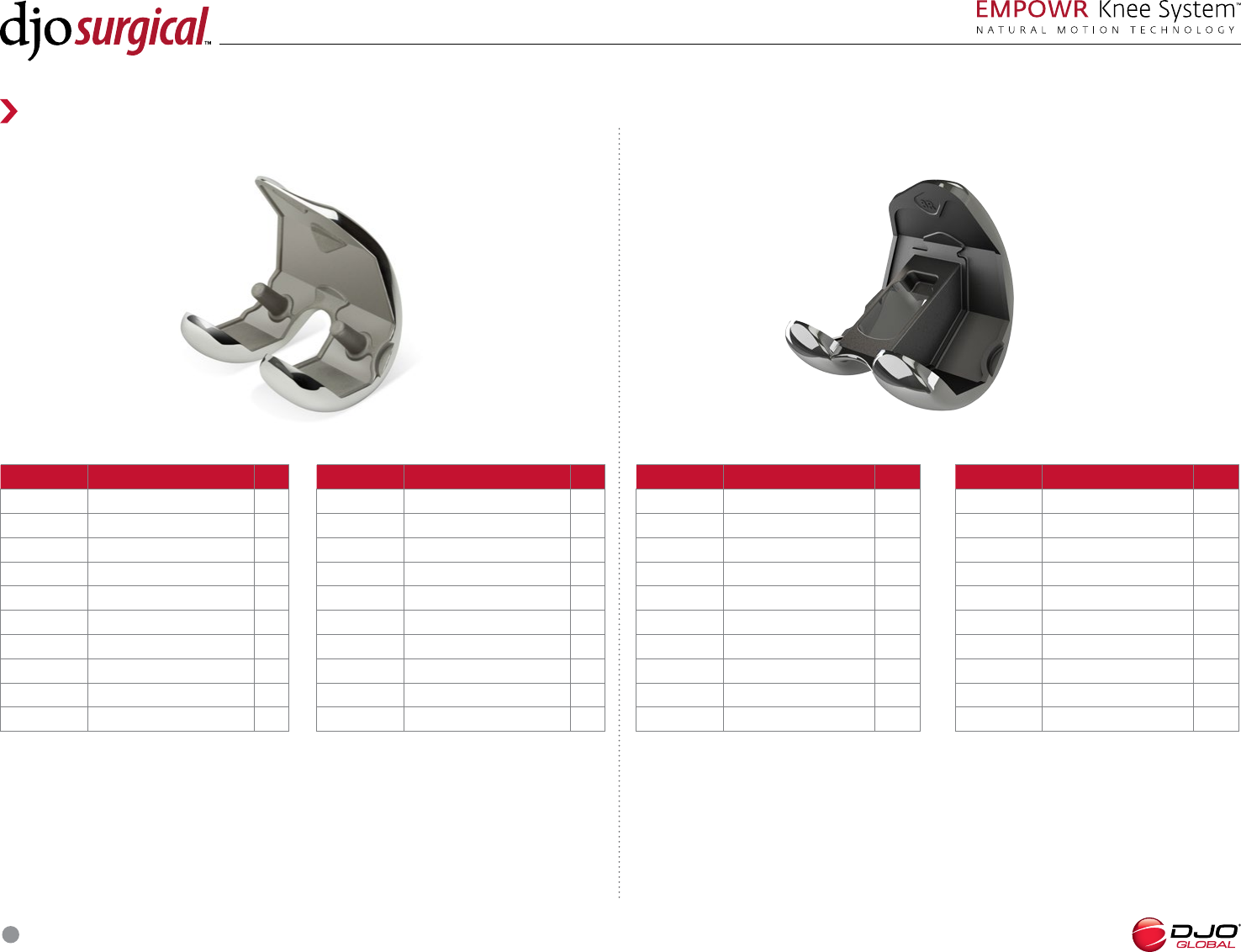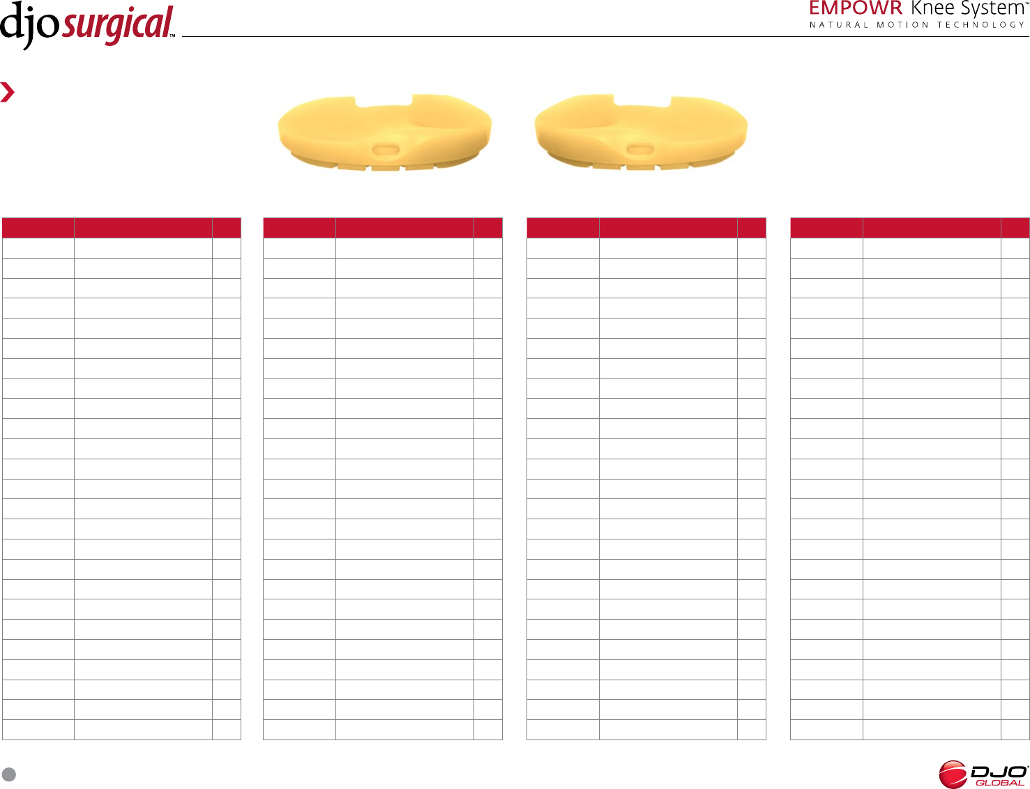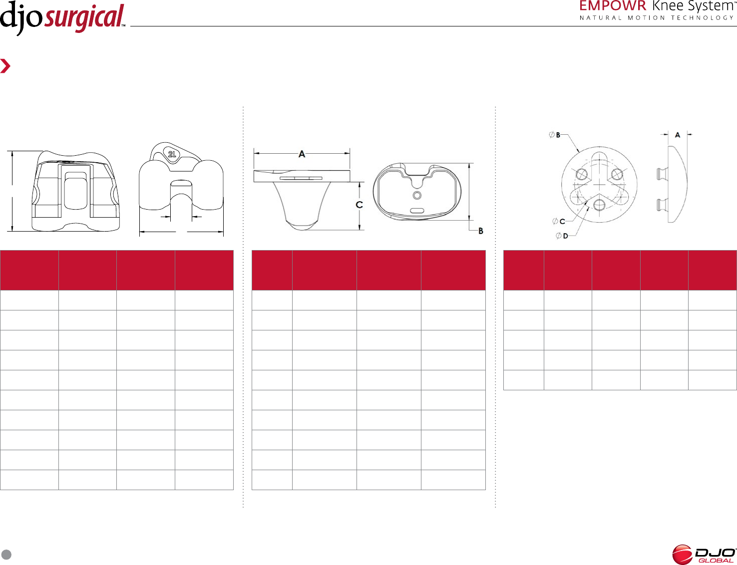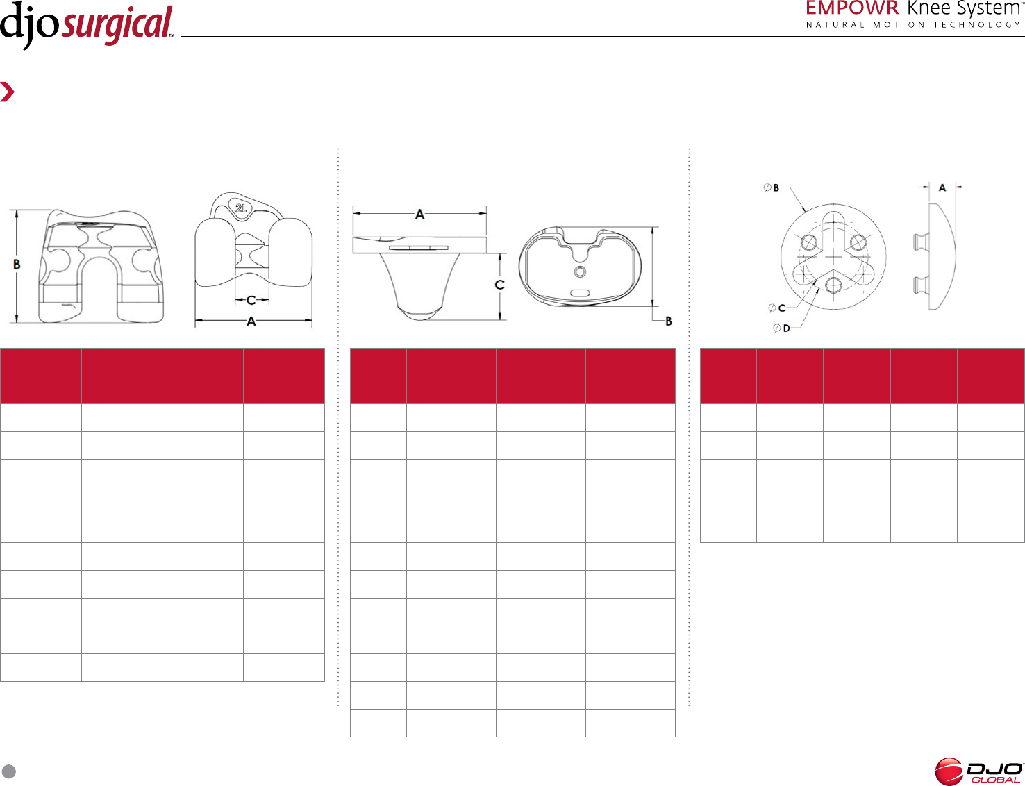 EMPOWR D Knee Tibial Inserts are available in sizes