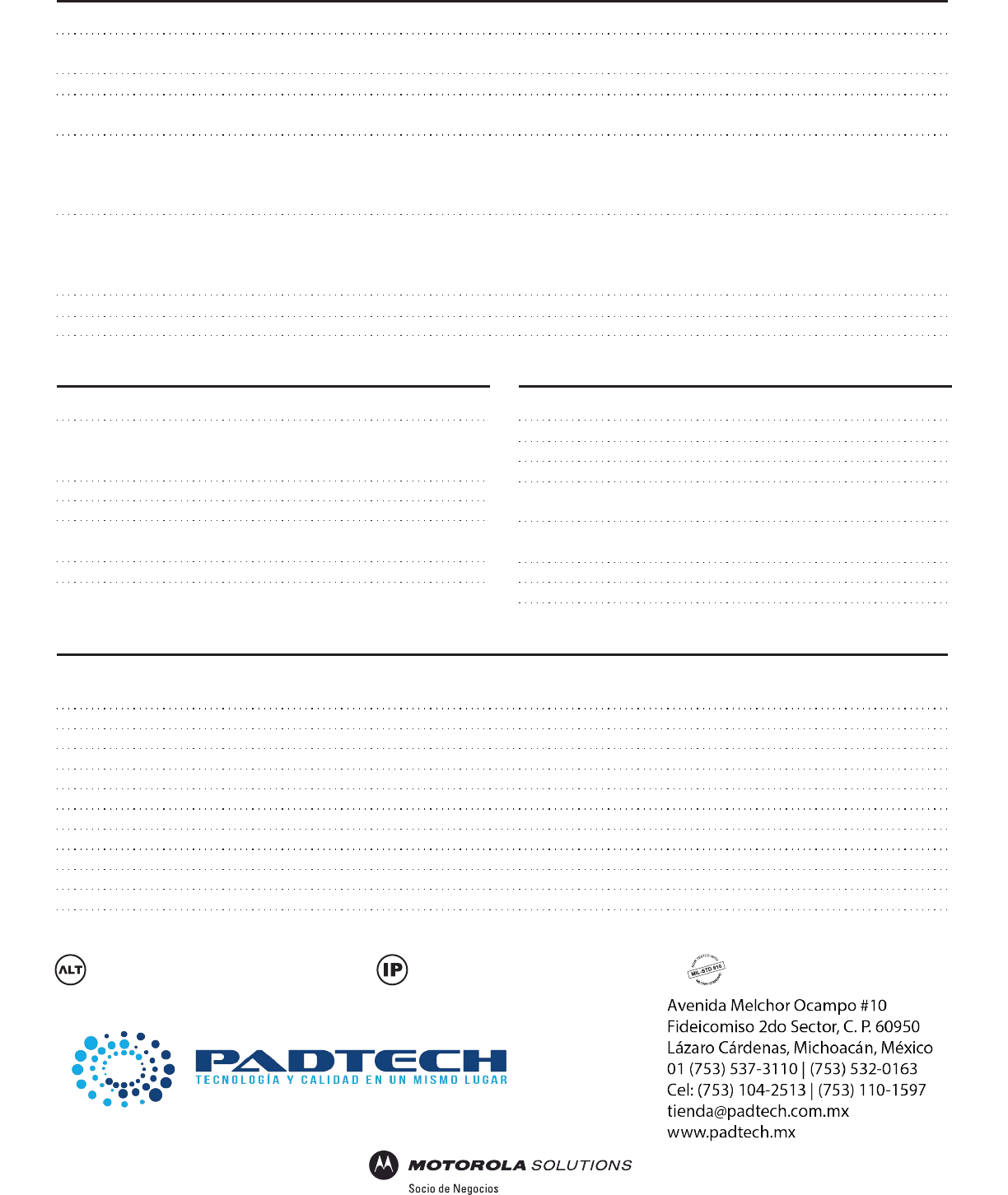Motorola Acelerated Life Tested Cumple con el estándar IP54 Military Standar MIL-STD 810 C, D, E, Fd