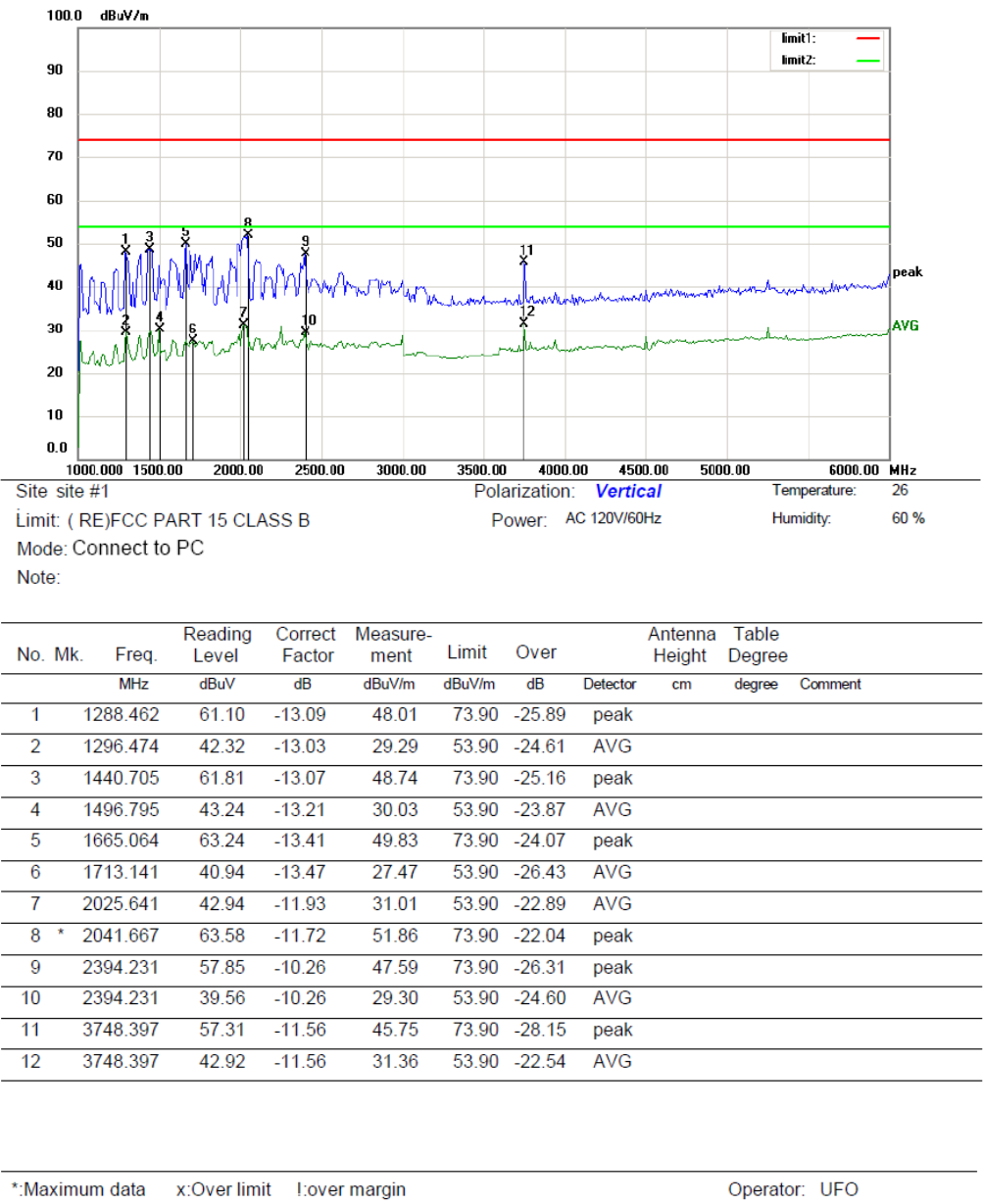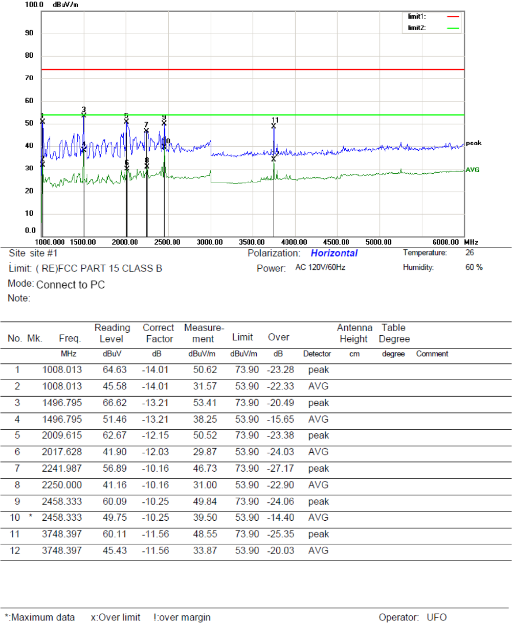5.5.2.After that, let the EUT work in test mode (Connect to PC) and measure it.