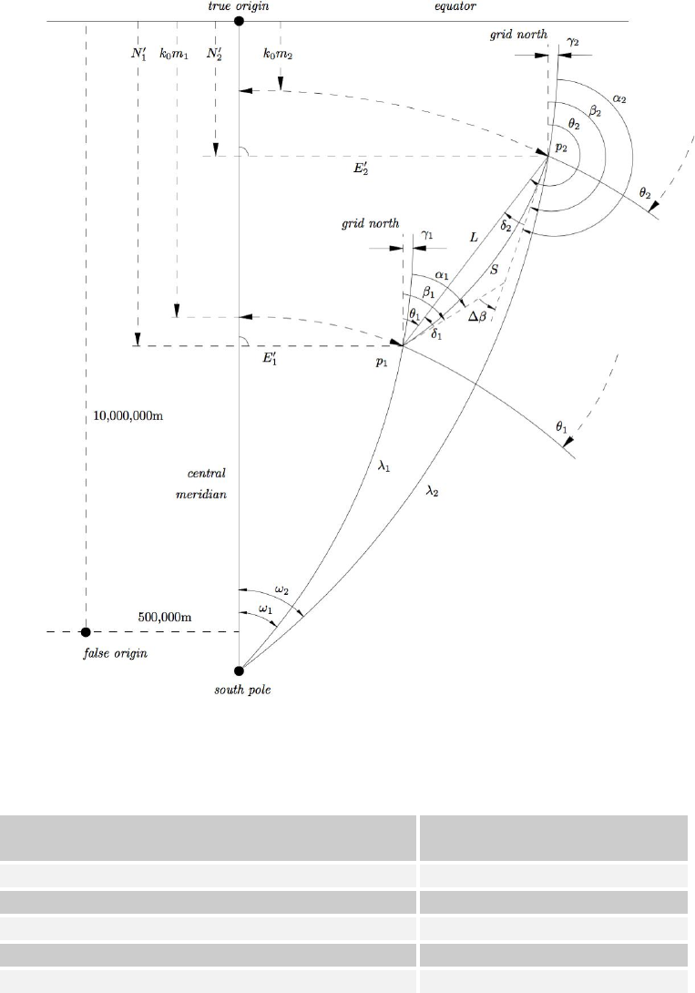 bearing and multiply the ellipsoidal distance by the line scale factor to obtain the