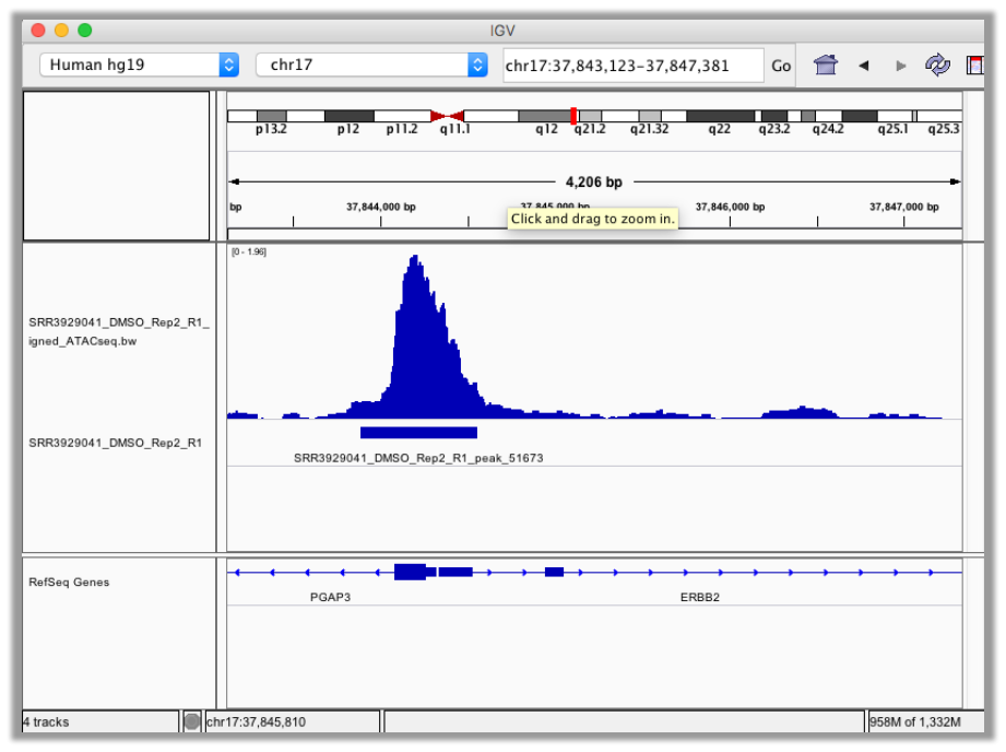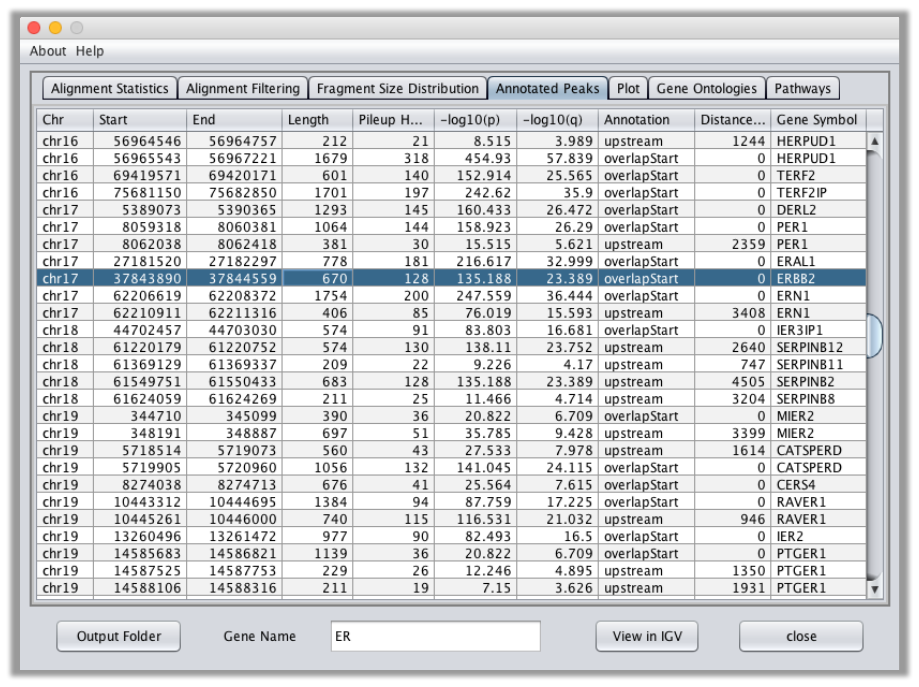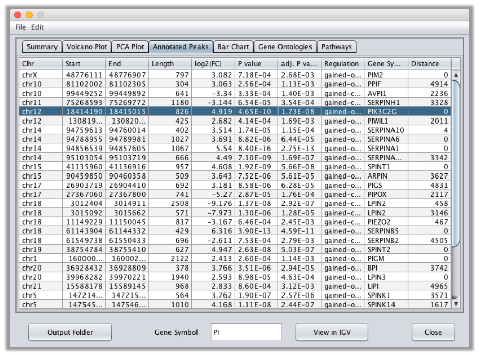 differentially enriched peak from the ‘Annotated Peaks’ tab and then click on the
