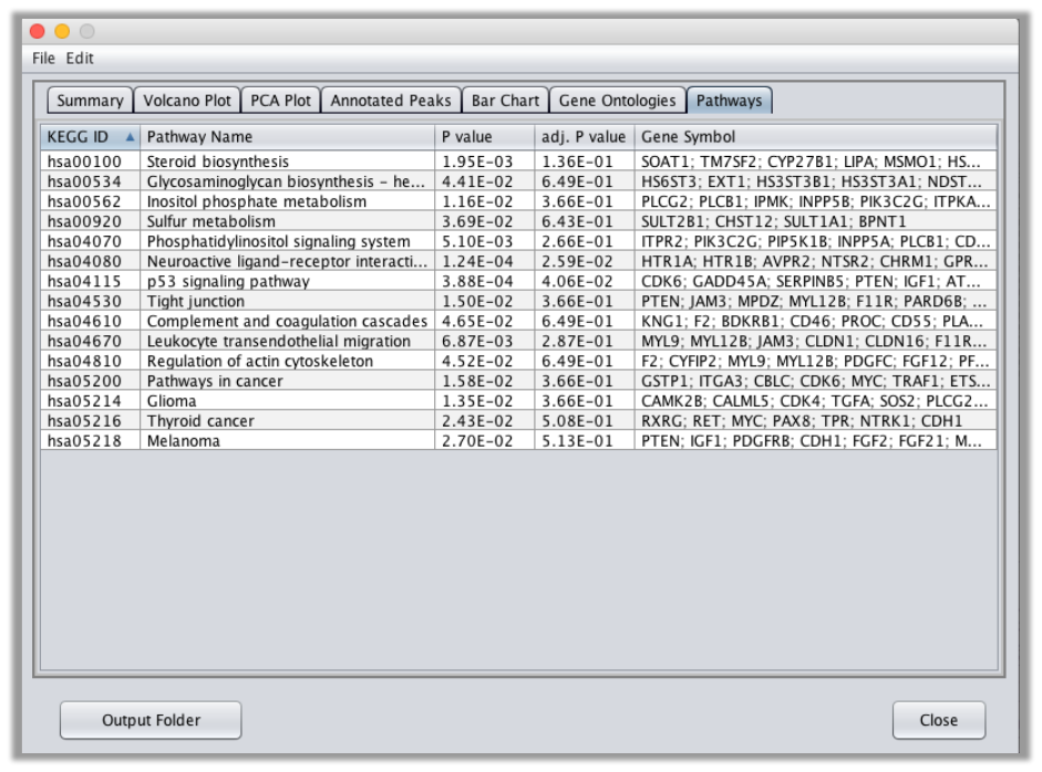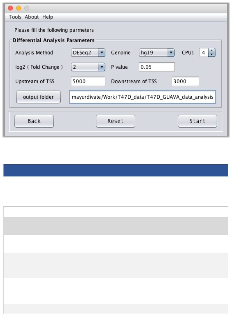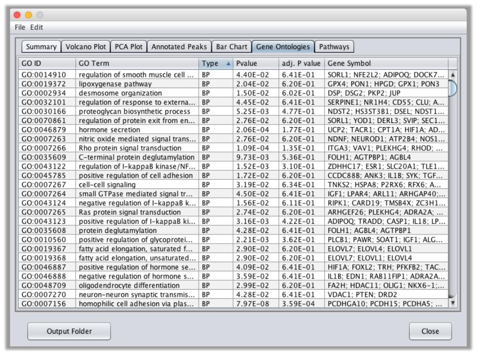 Once differential analysis has finished, GUAVA will show the results as a tabular