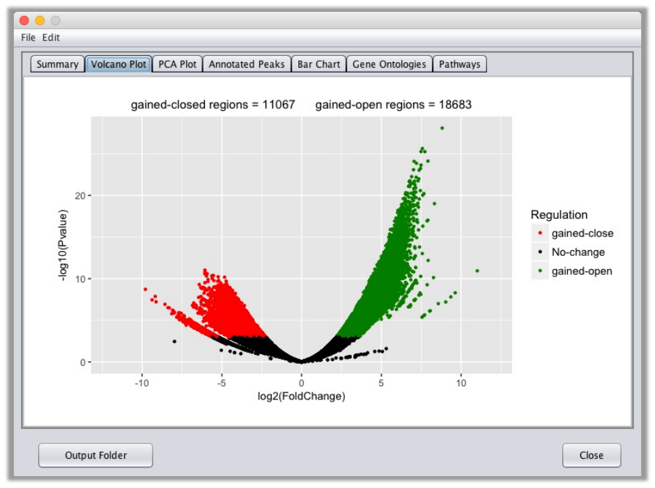 Figure 16. A volcano plot showing the differential ATAC-seq signals.