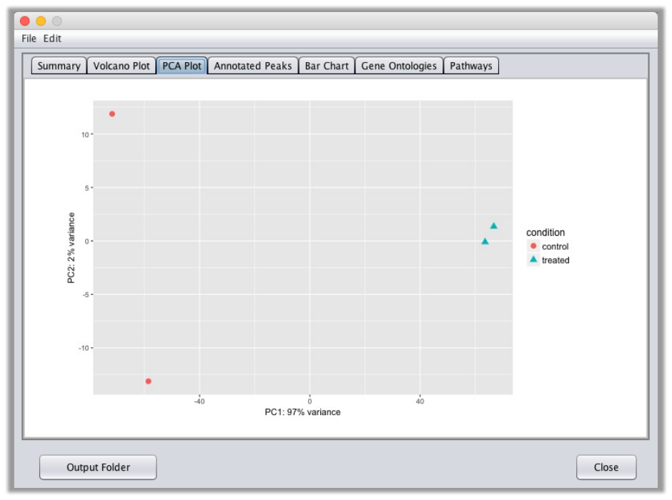 Figure 17. A PCA plot illustrating the variance between the control and treated