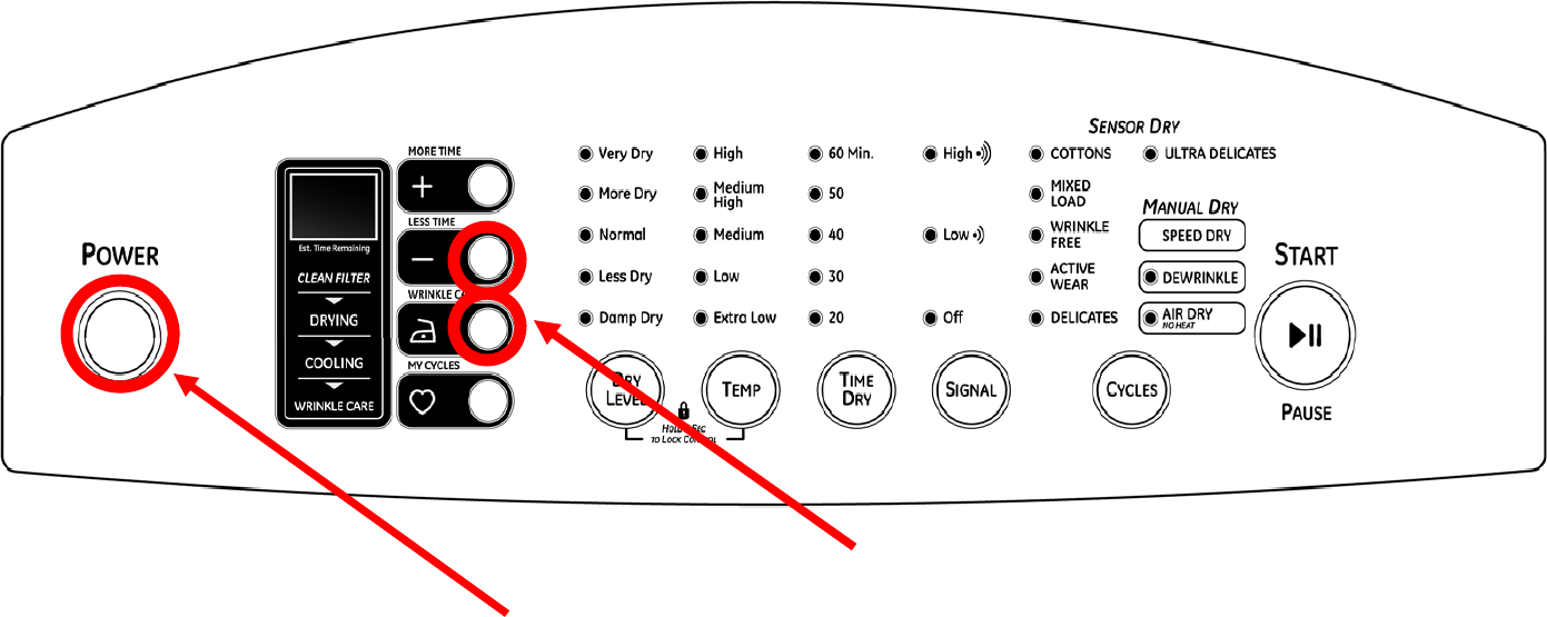•Press and hold Less Time + Wrinkle Care then