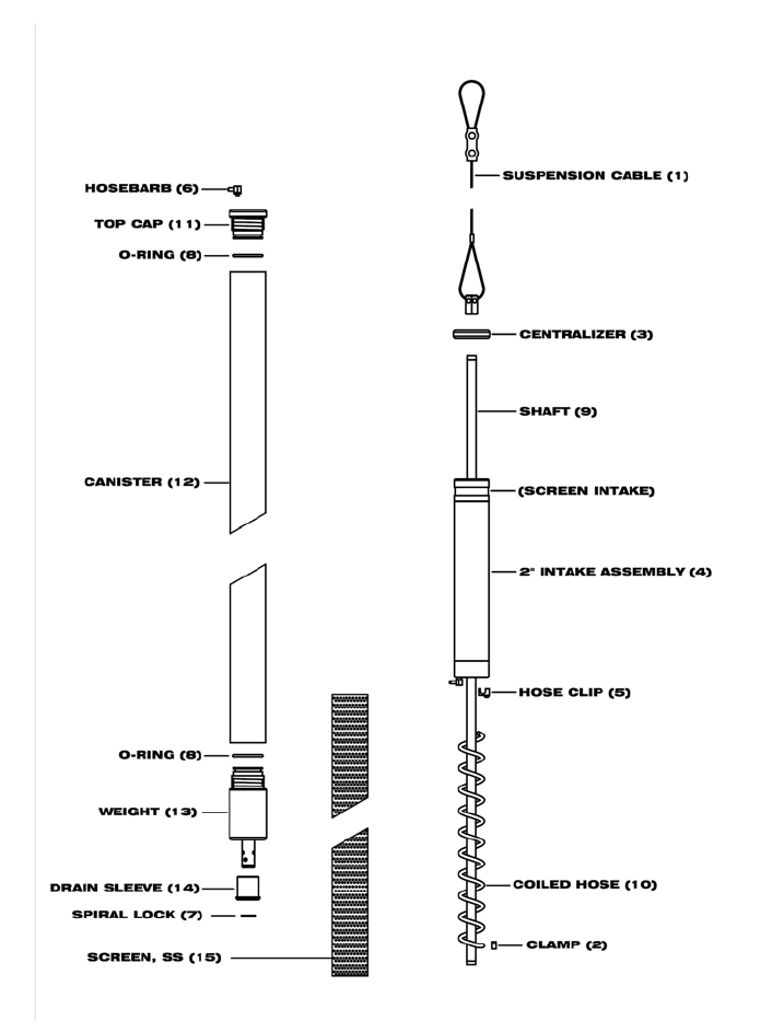 intake travel, to accommodate water fluctuations. The unit is suspended in the well at the