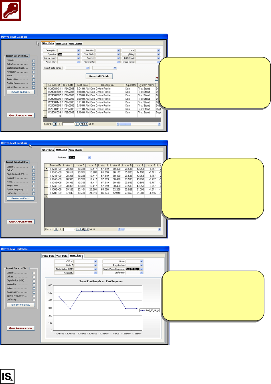 • Data stored to Microsoft Excel® and Access® facilitating trend analysis and forecasting