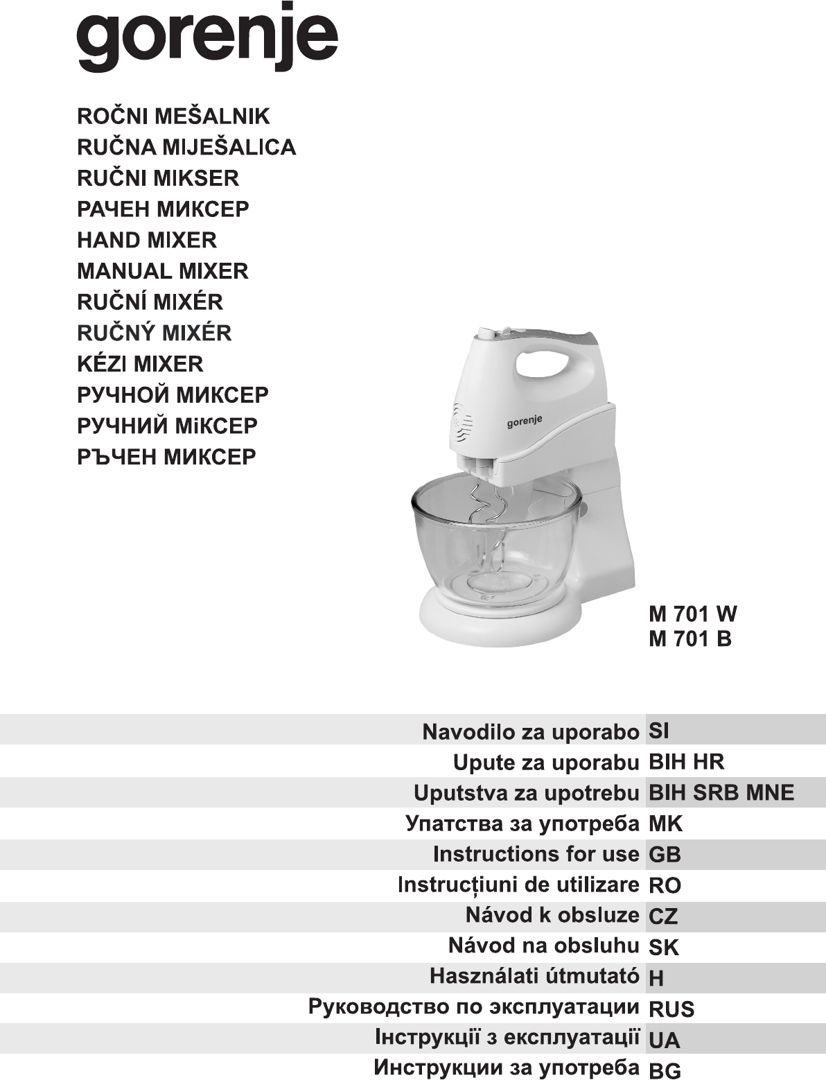 Ročni mešalnik Gorenje M701W in M701B. Pazljivo preberite ta navodila. Shranite jih za bodočo