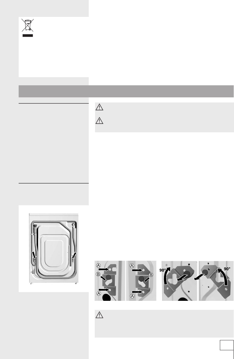 • Стиральная машина должна стоять ровно и стабильно на твердой бетонной поверхности