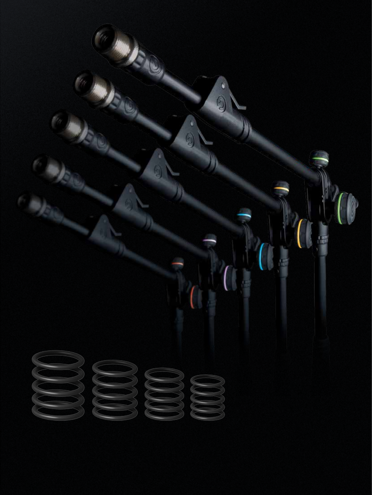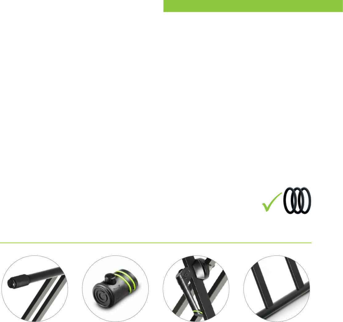 P Replaceable rubber marker rings for colour coding and personalizing your stand.