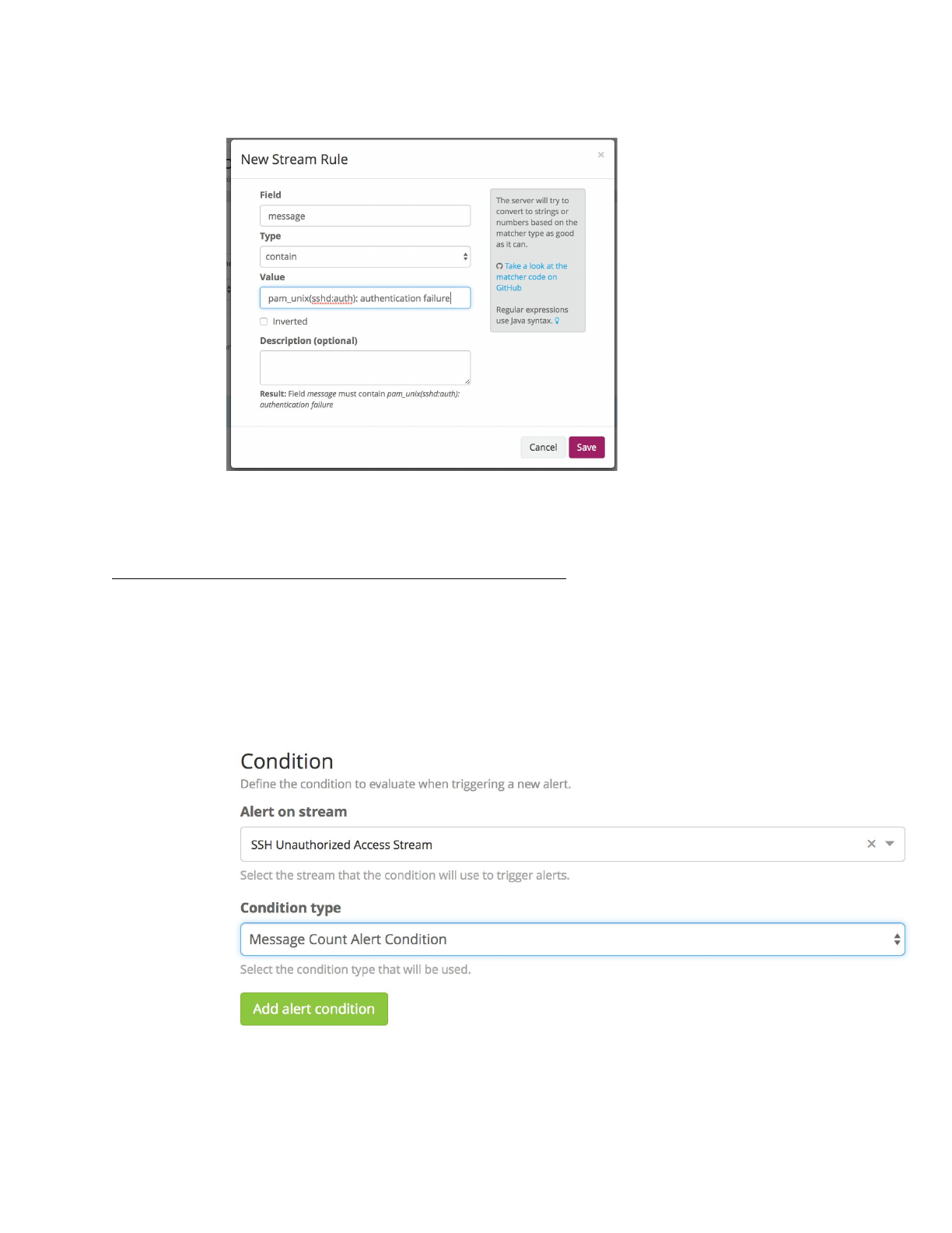 c. Enter “pam_unix(sshd:auth): authentication failure” for value