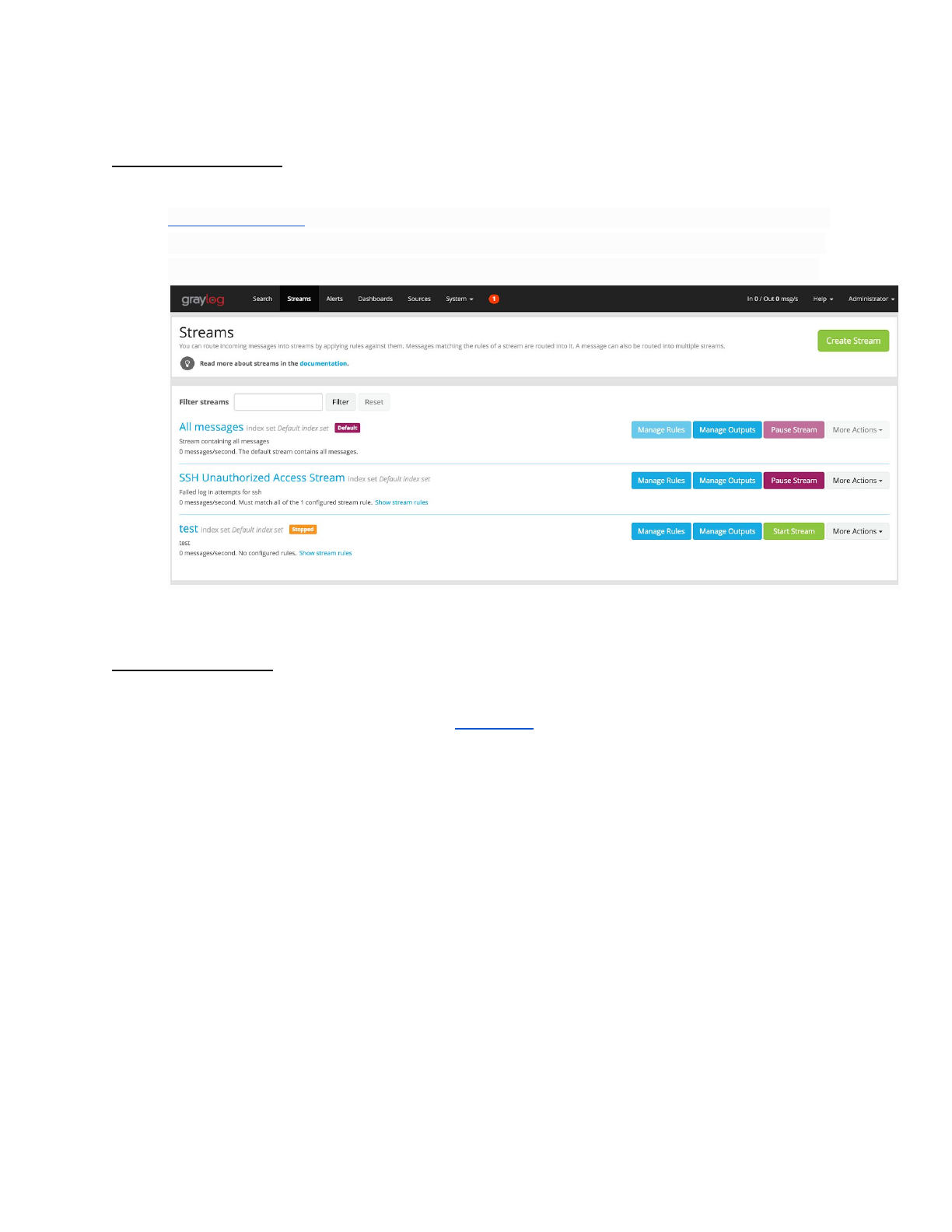 ● Graylog > Streams