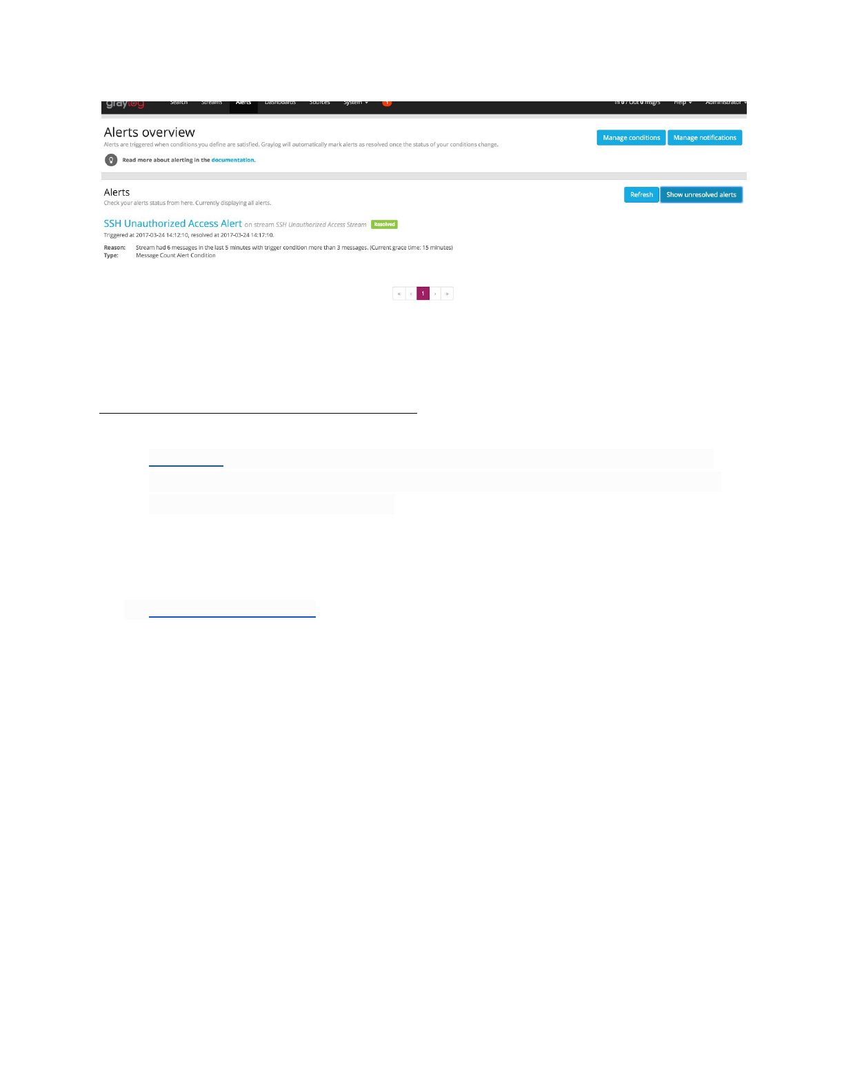 ● http://docs.graylog.org/en/2.2/pages/getting_started/stream_alerts.html
