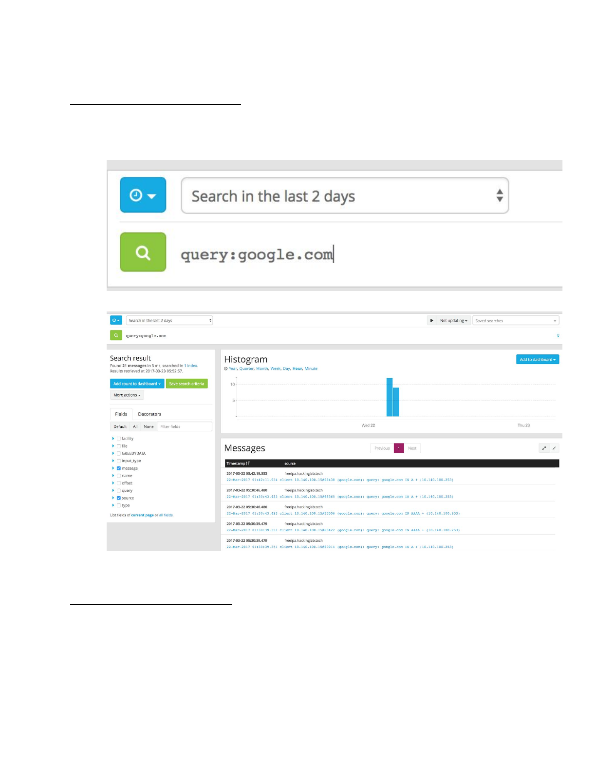 ● Let’s search for every log entry where the key is query and the value is google.com
