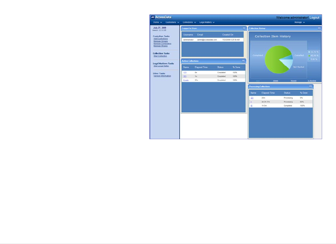 delivery, and custodian and collection management capabilities. It gives visibility into all ESI across the enterprise and allows for