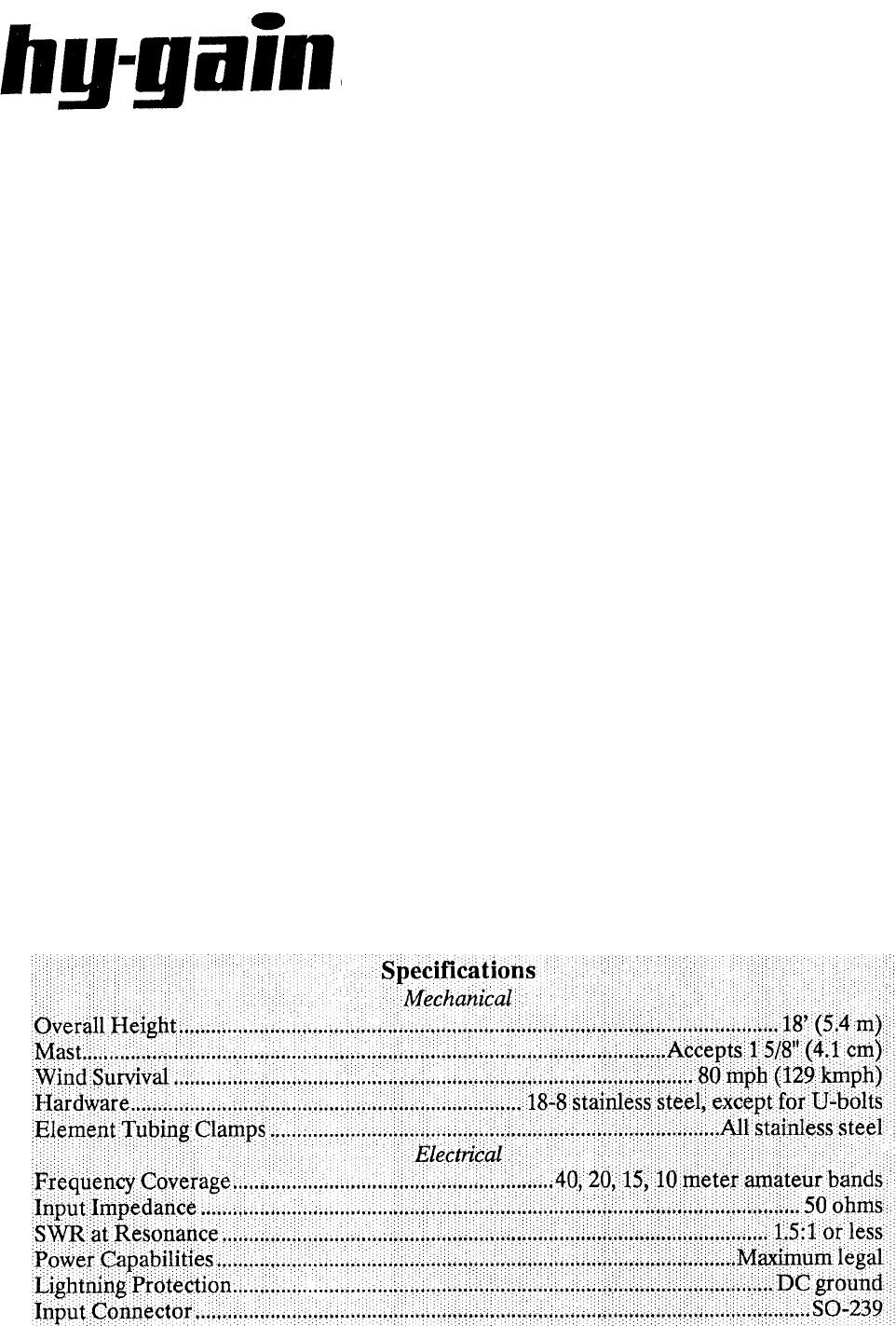 User Manual: Pdf HY-GAIN--AV-14AVQ-3BD VERT ANT