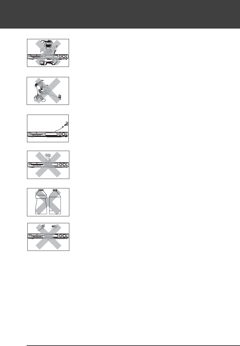 Não coloque vasos ou copos contendo líquido nem moedas, clipes ou