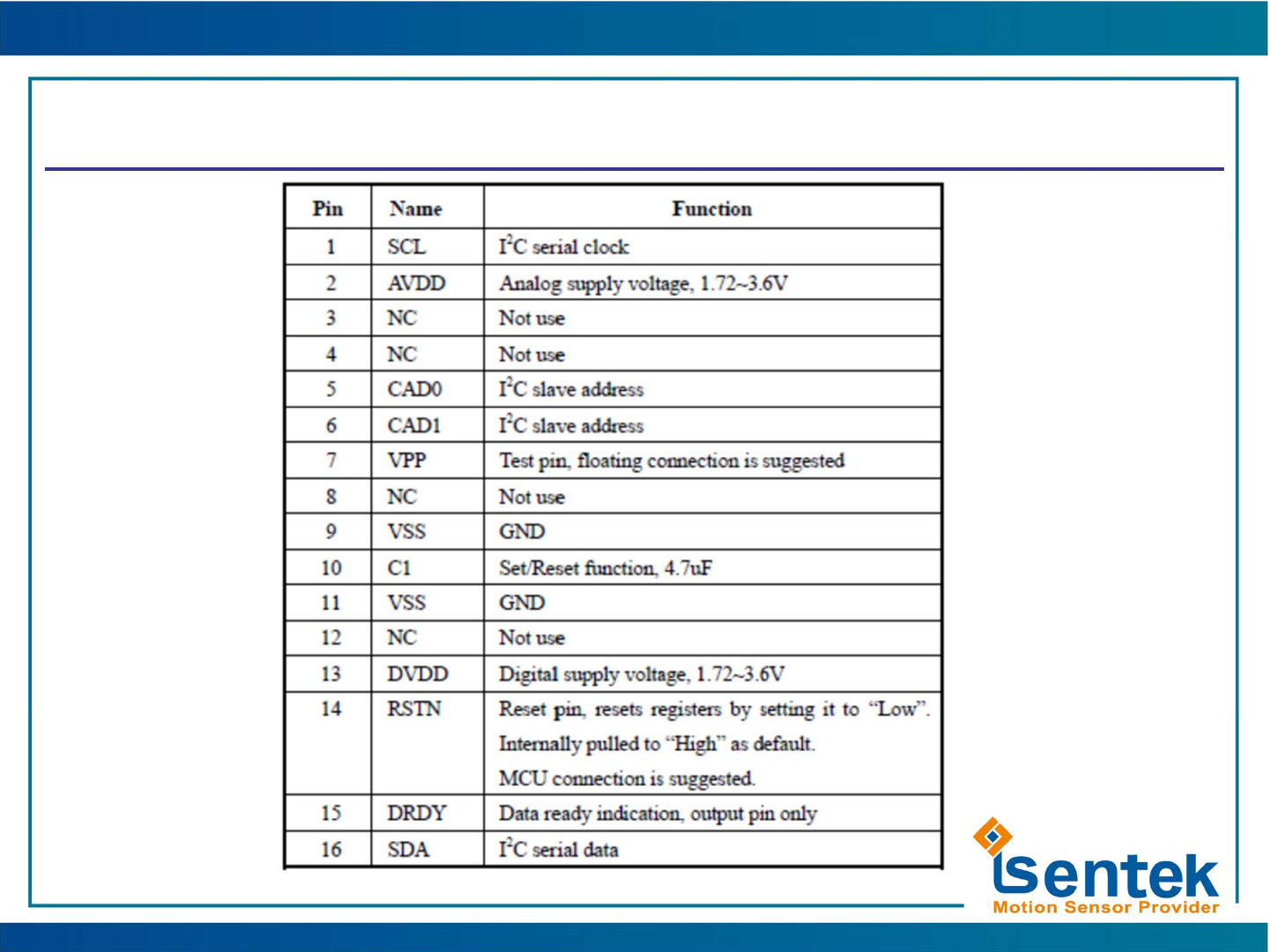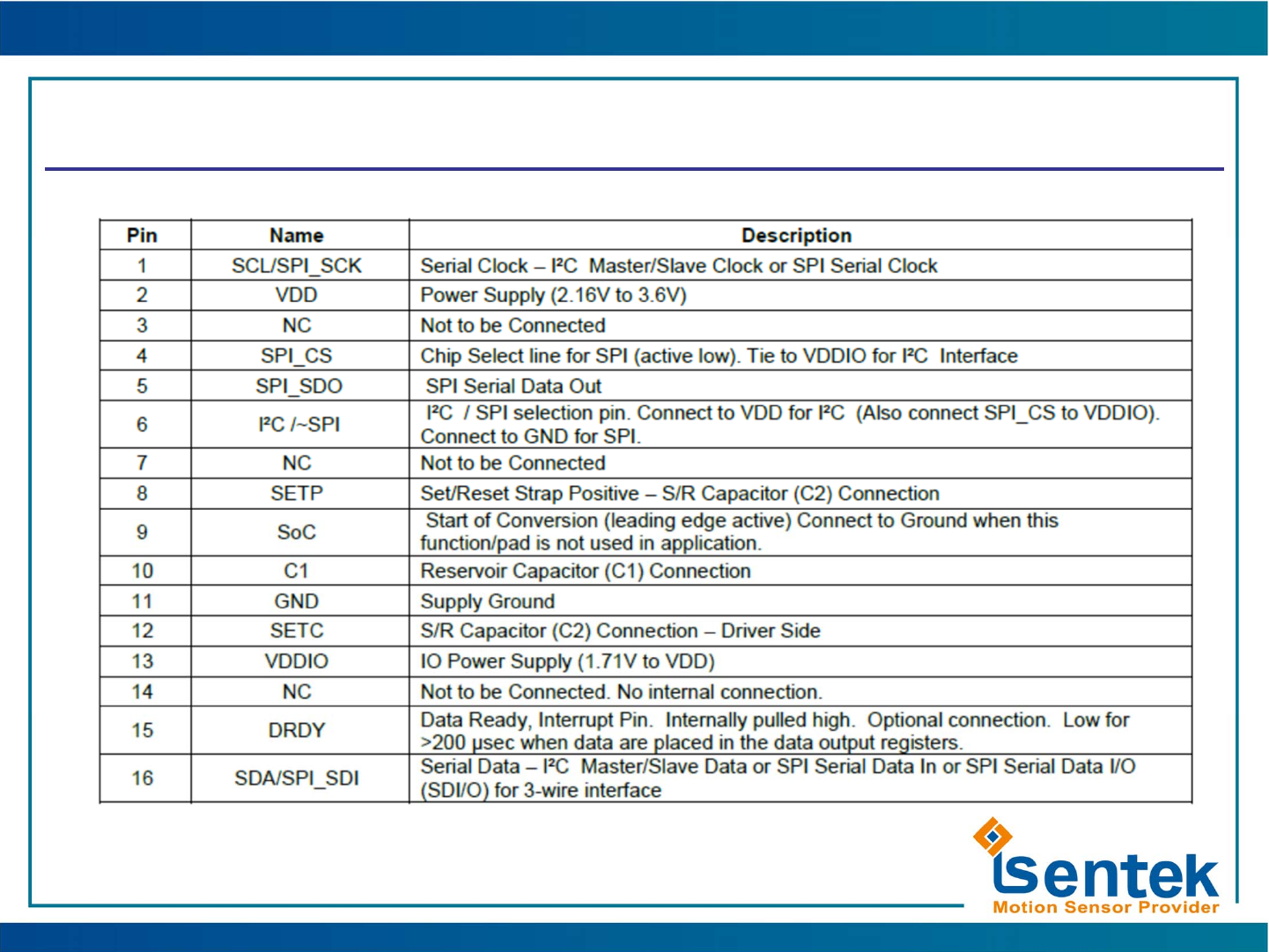 6CAD1 NC I2C/~SPI Compatible (IST8310 slave address select, see page 5)