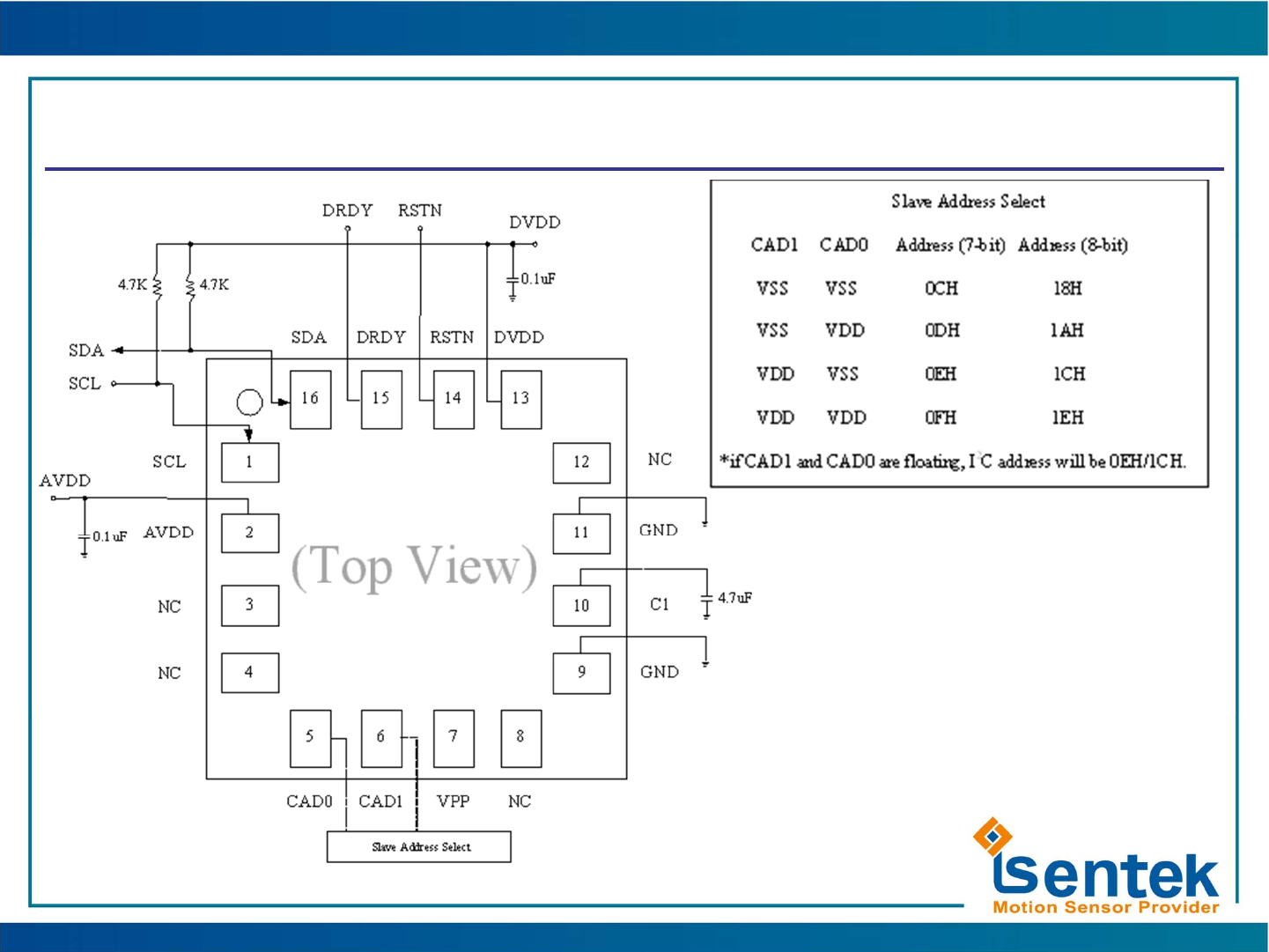 2C default (CAD0, CAD1 floating) slave address: 0Eh(7-bit) /