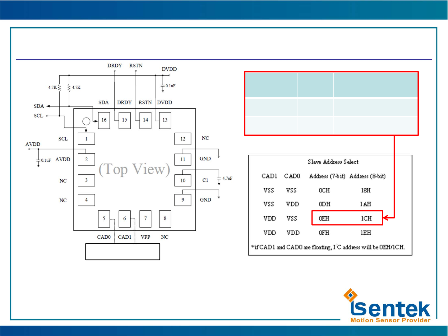 •I2C slave address is 0EH(7-bit)/ 1CH(8-bit) when you mount