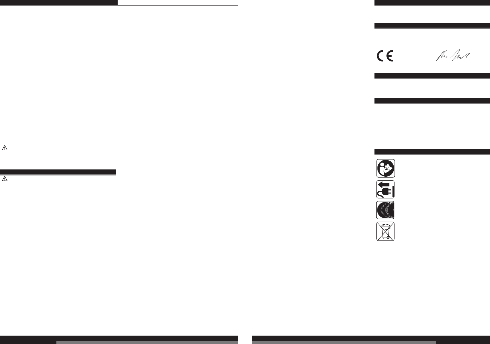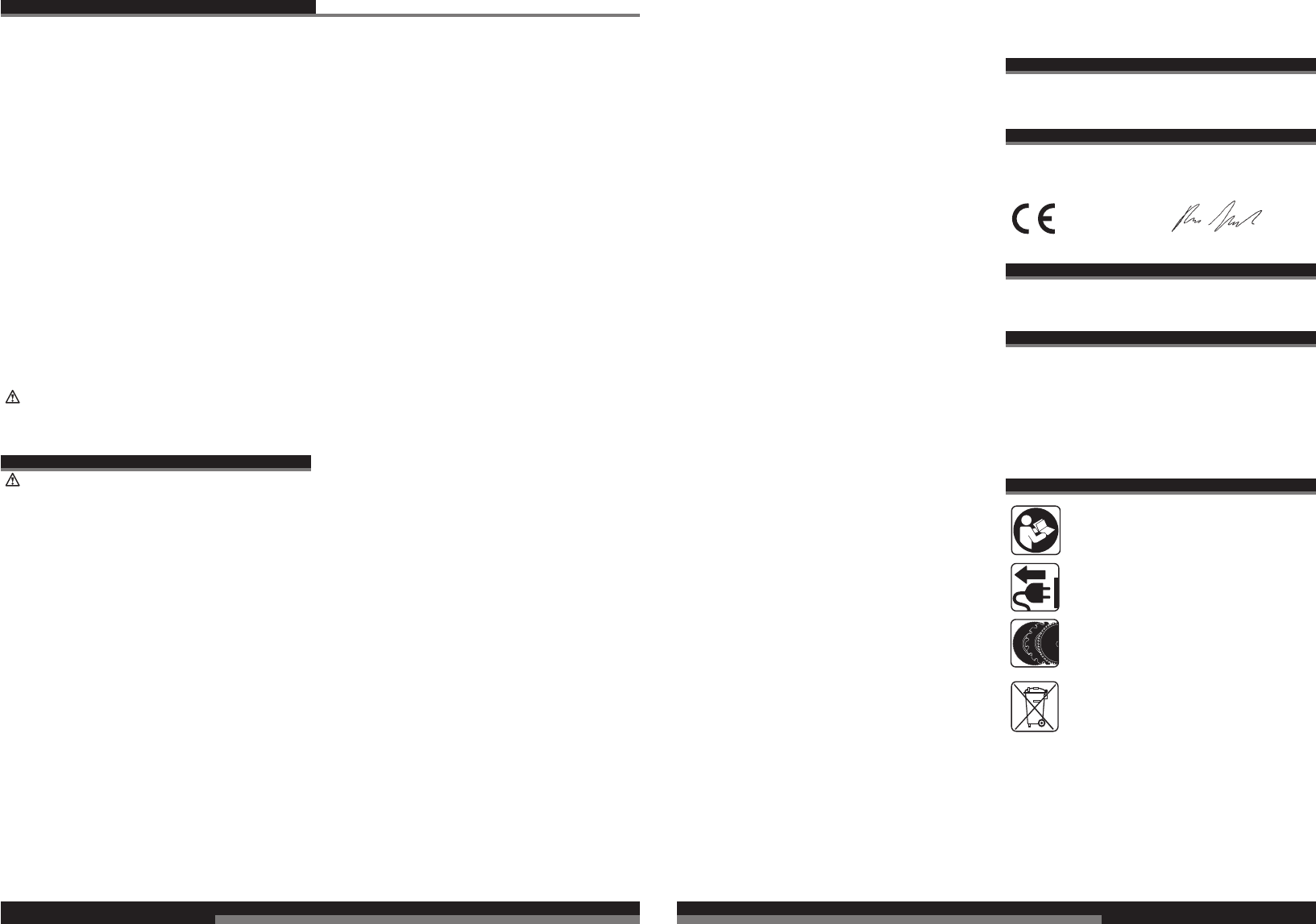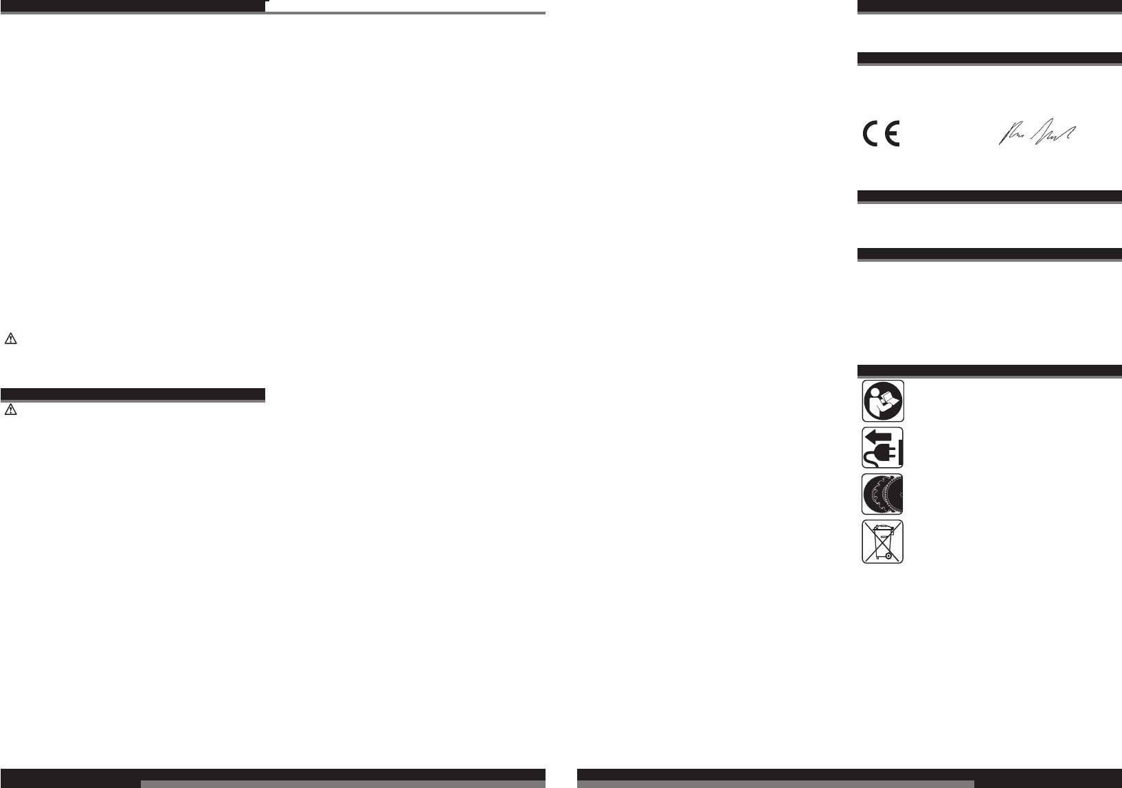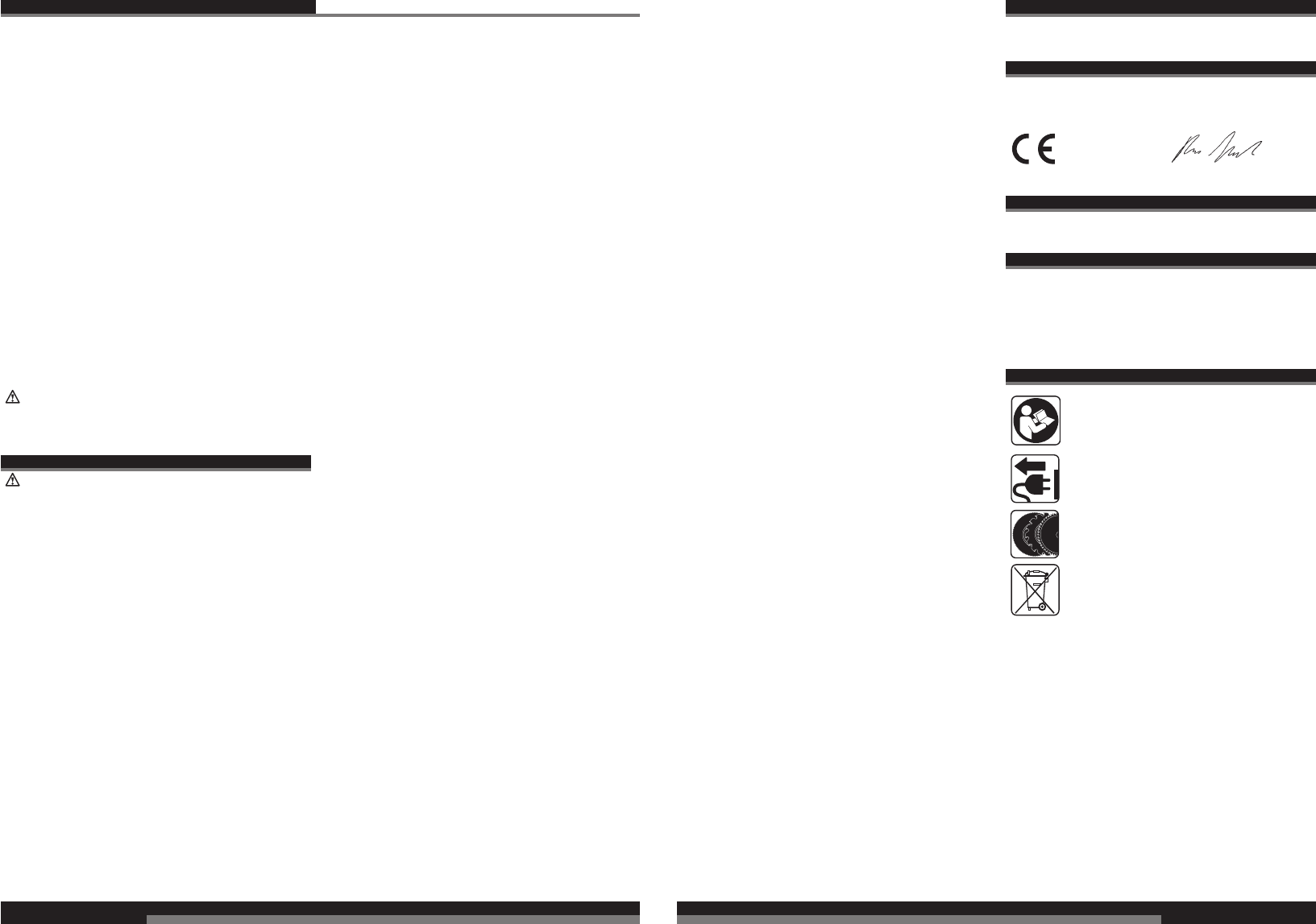 CE-Konformitetserklæring, Nettilslutning, Vedligeholdelse, Symboler Vær venlig at læse og