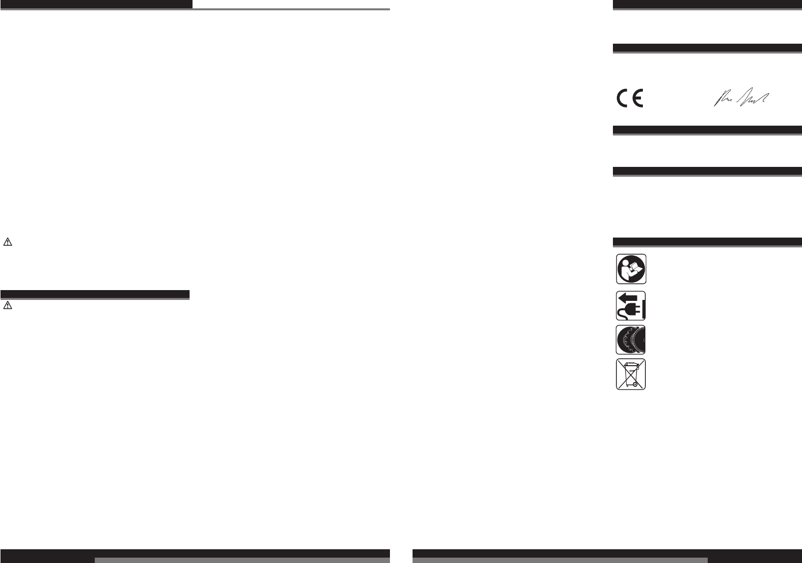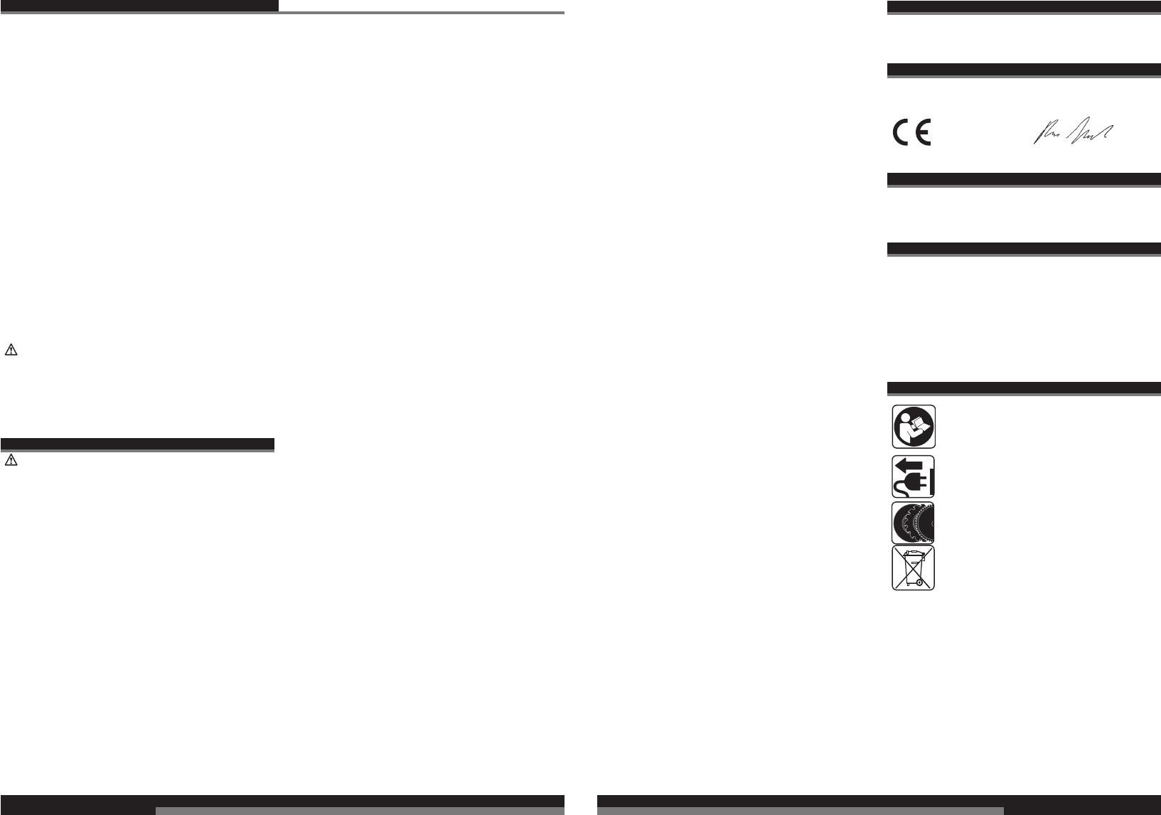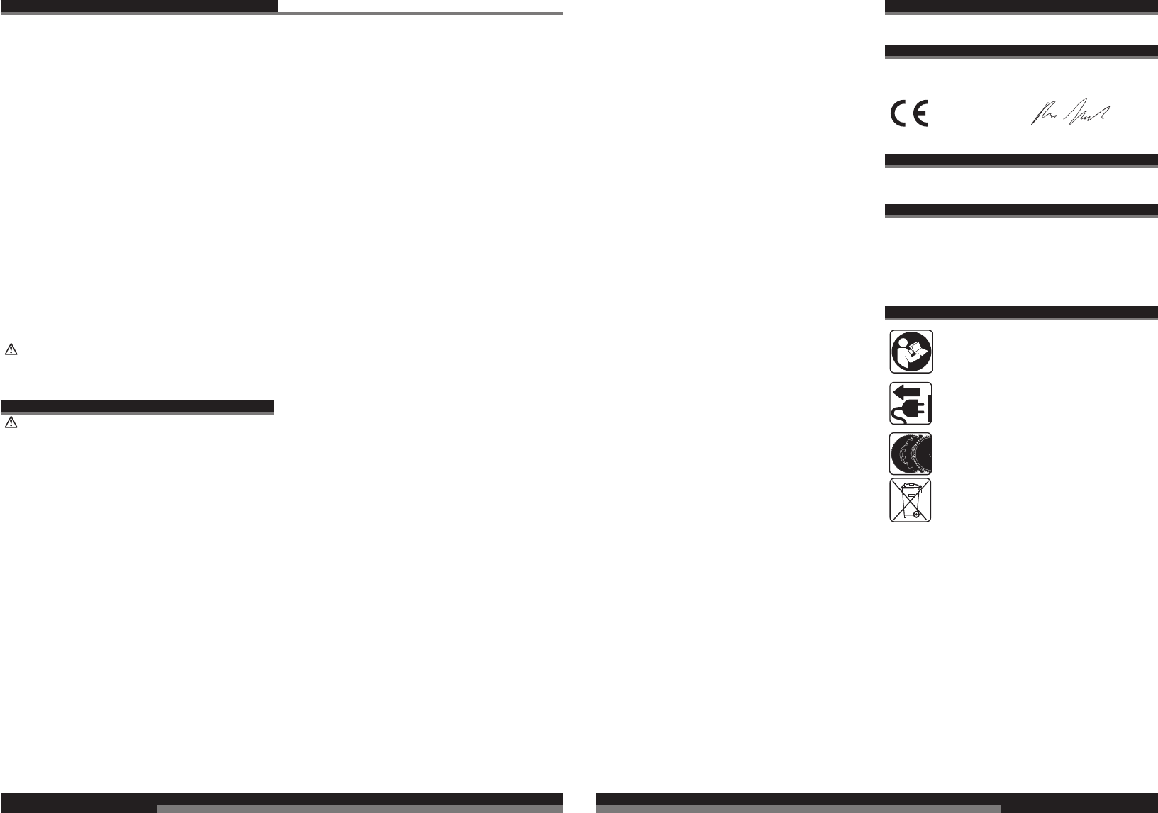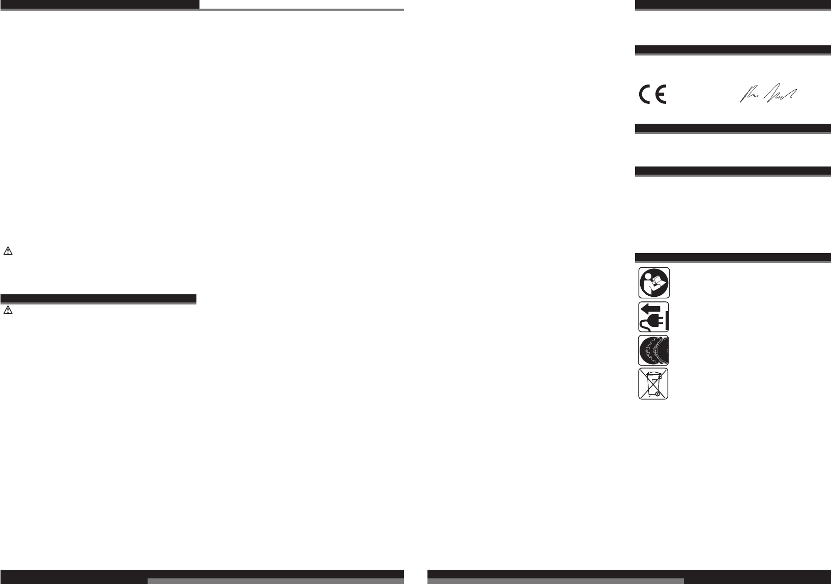 CE-Konformitetserklæring, Nettilslutning, Vedligeholdelse, Symboler Vær venlig at læse og