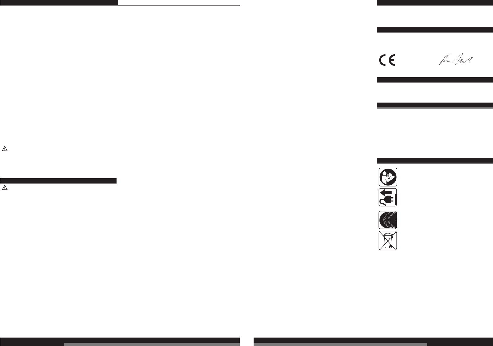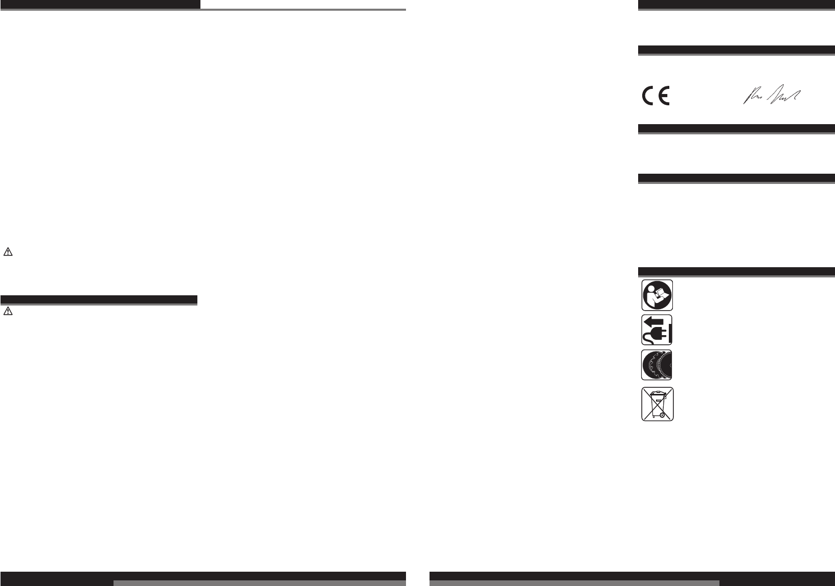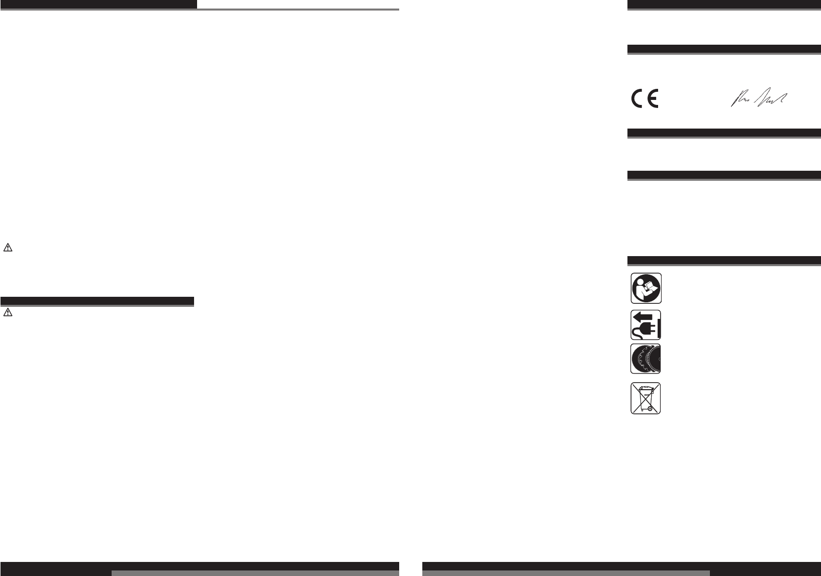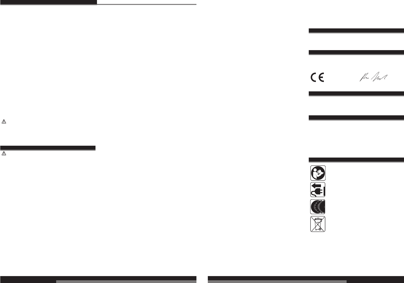 CE-Konformitetserklæring, Nettilslutning, Vedligeholdelse, Symboler Vær venlig at læse og