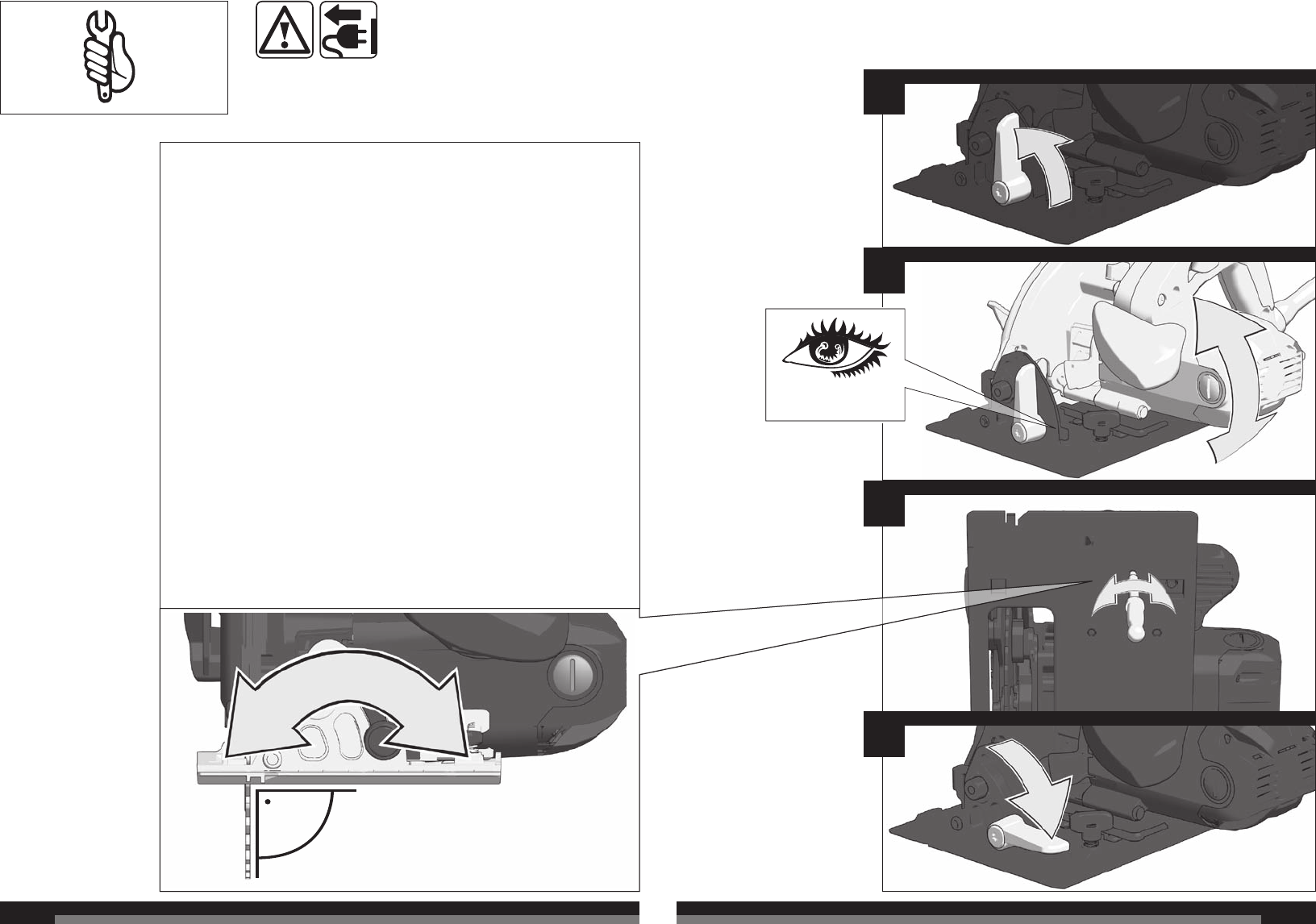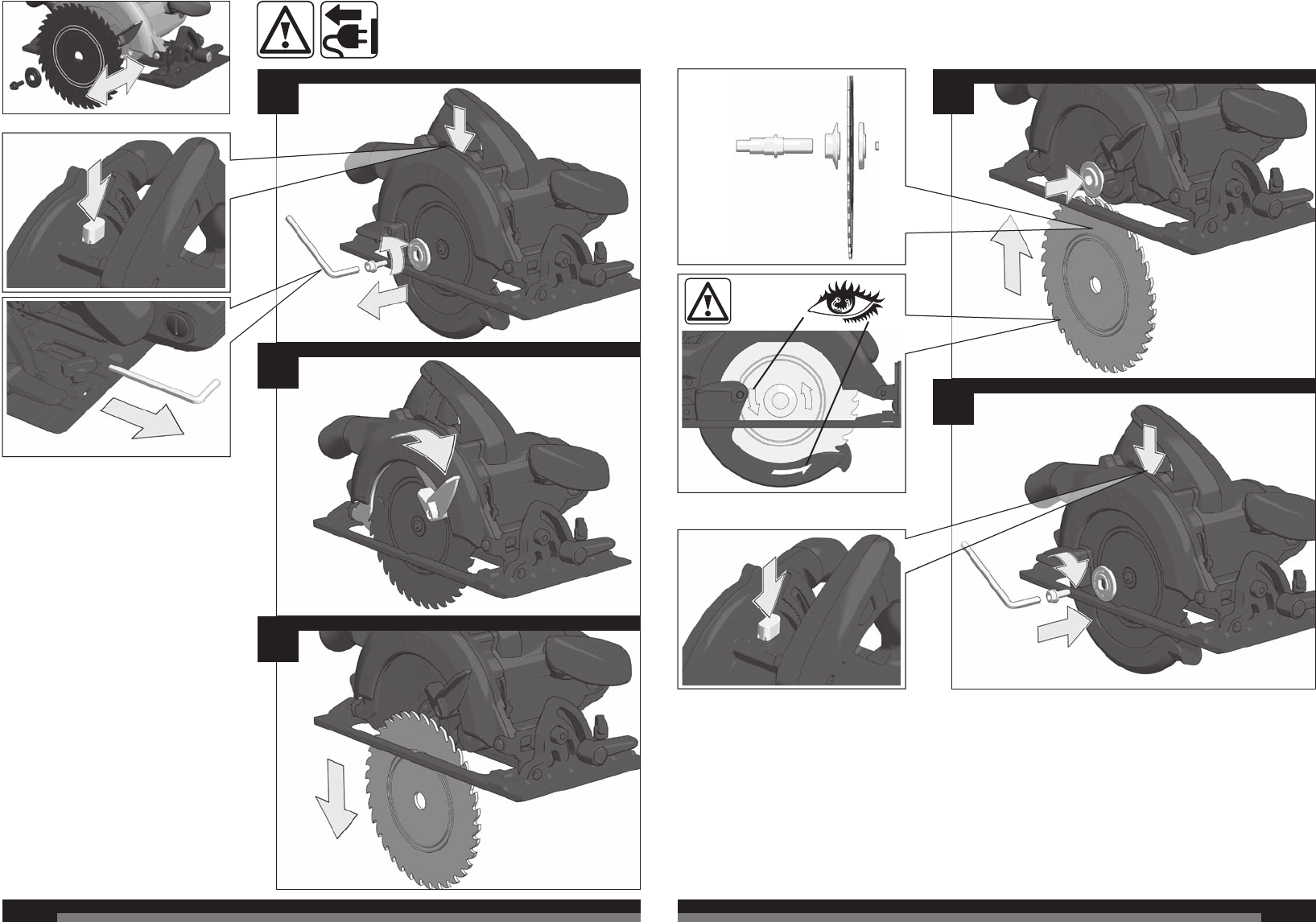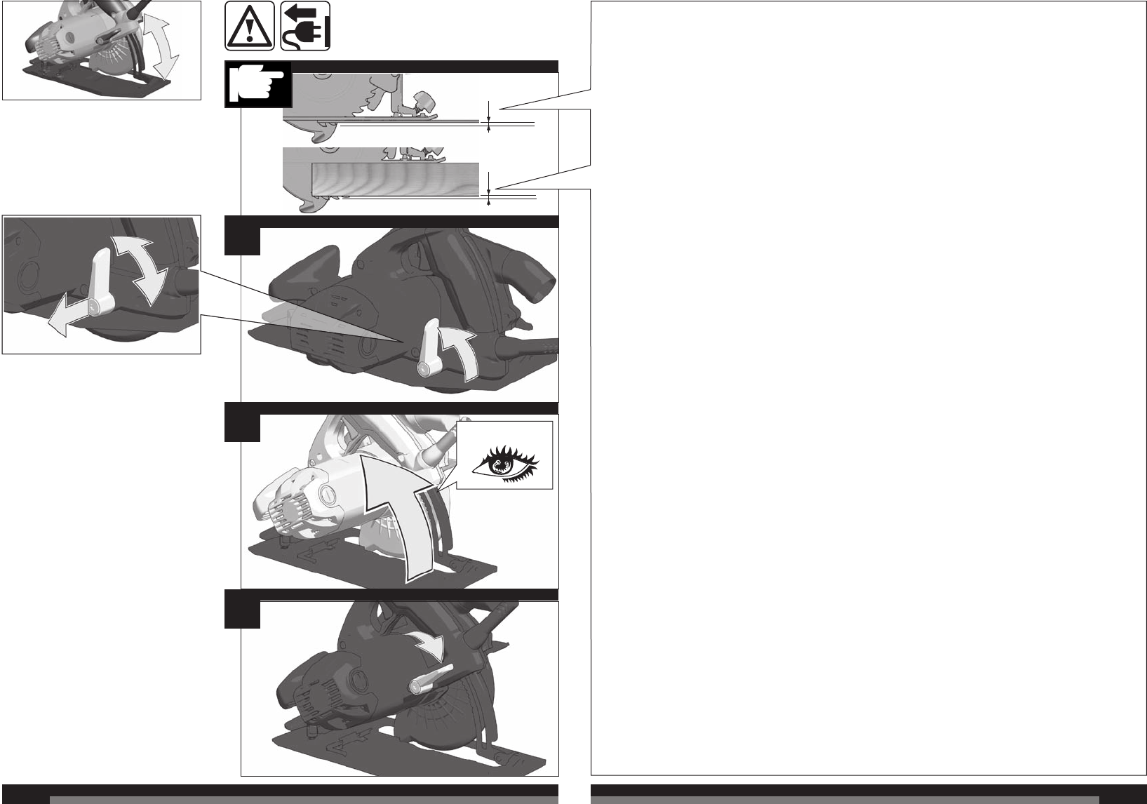 重 新 开 动 插 在 工 件 中 的 圆 锯 时 , 必 须 先 把 锯 片 放