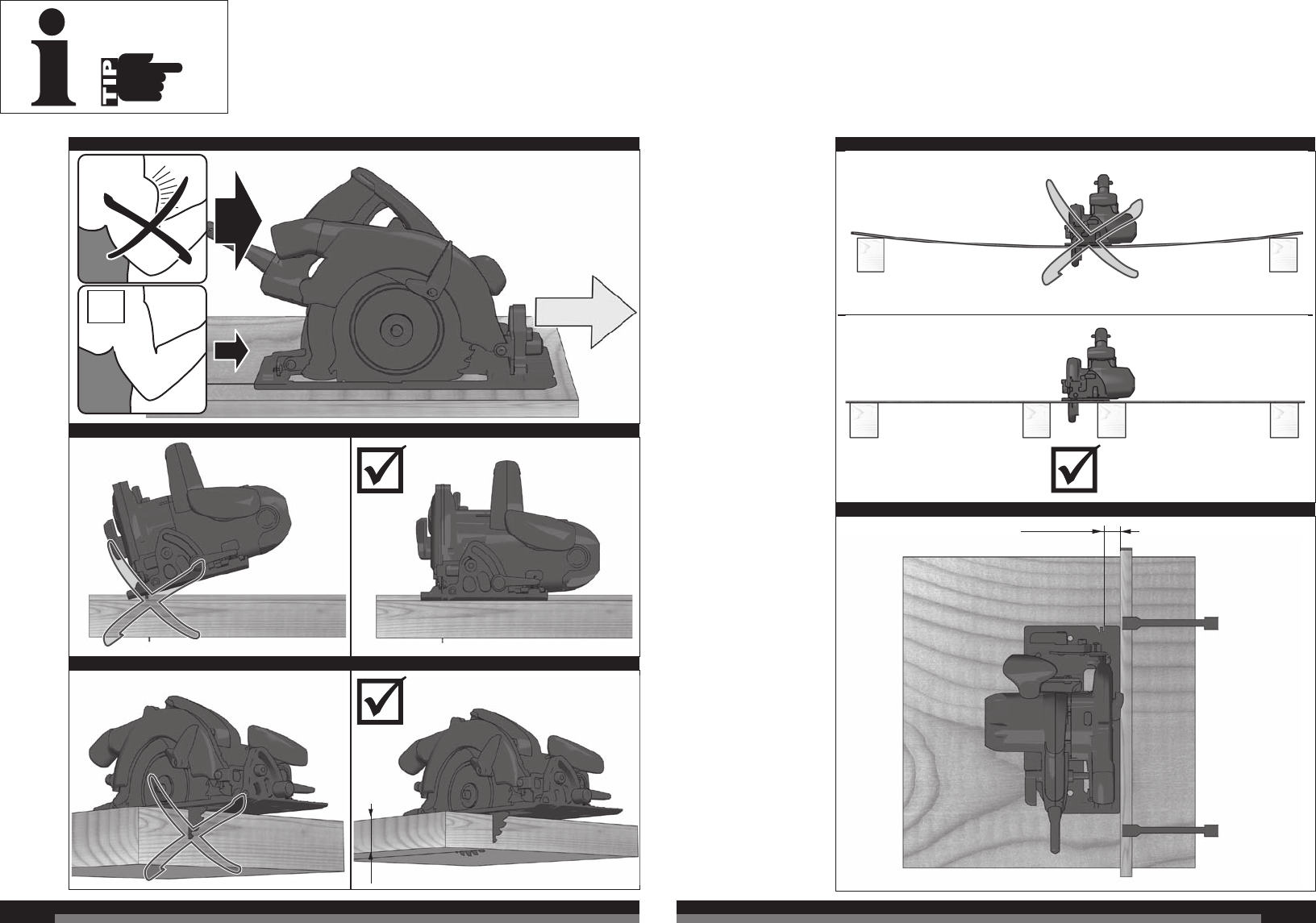 使 用 错 误 或 操 作 不 当 , 都 会 导 致 圆 锯 反 弹 , 为 了
