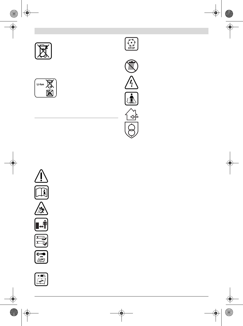 Erläuterung der Symbole auf dem Gartengerät