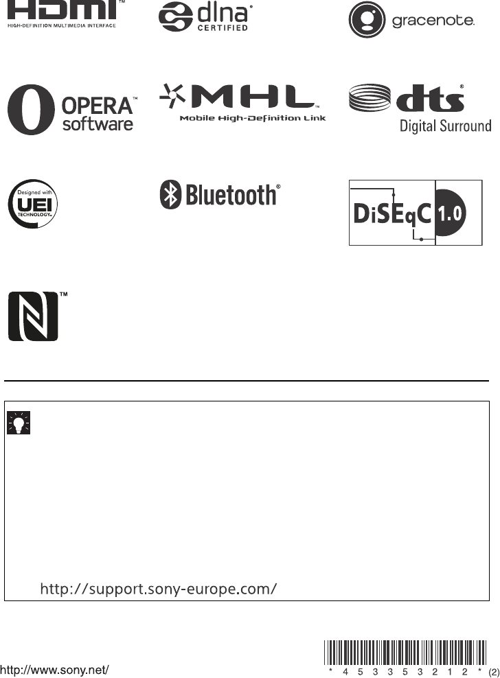 - *1 Energieverbruik per jaar, gebaseerd op het vermogensverbruik van de televisie die 365 dagen werkt gedurende 4 uur per dag. Het eigenlijke energieverbruik zal afhangen van de manier waarop de televisie wordt gebruikt.