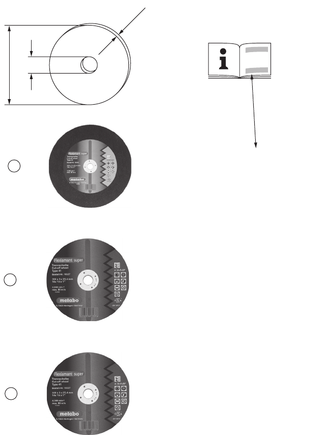 Dmax x B x d mm (in) 355 x 3 x 25,4 (14 x 3/32 x 1)