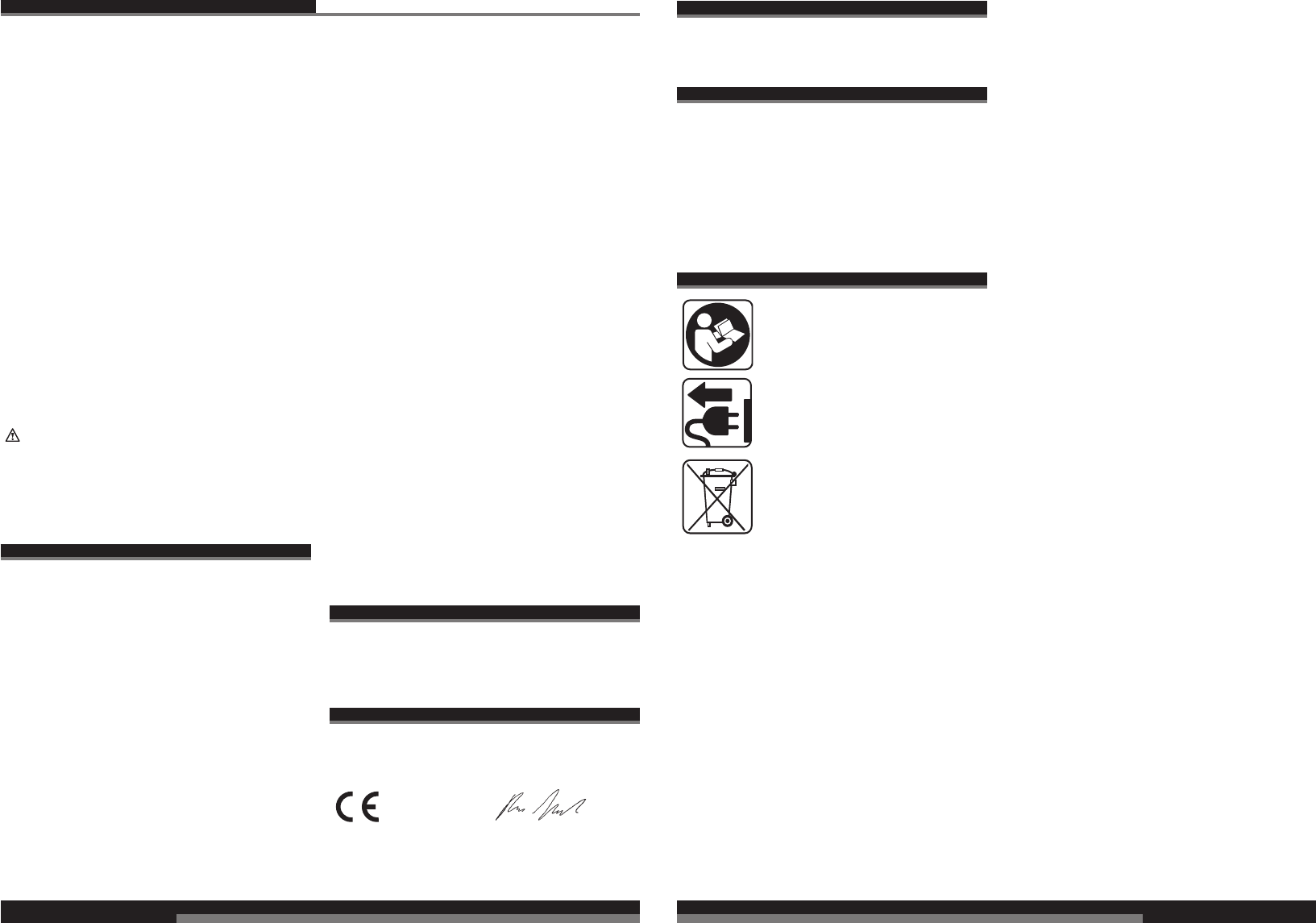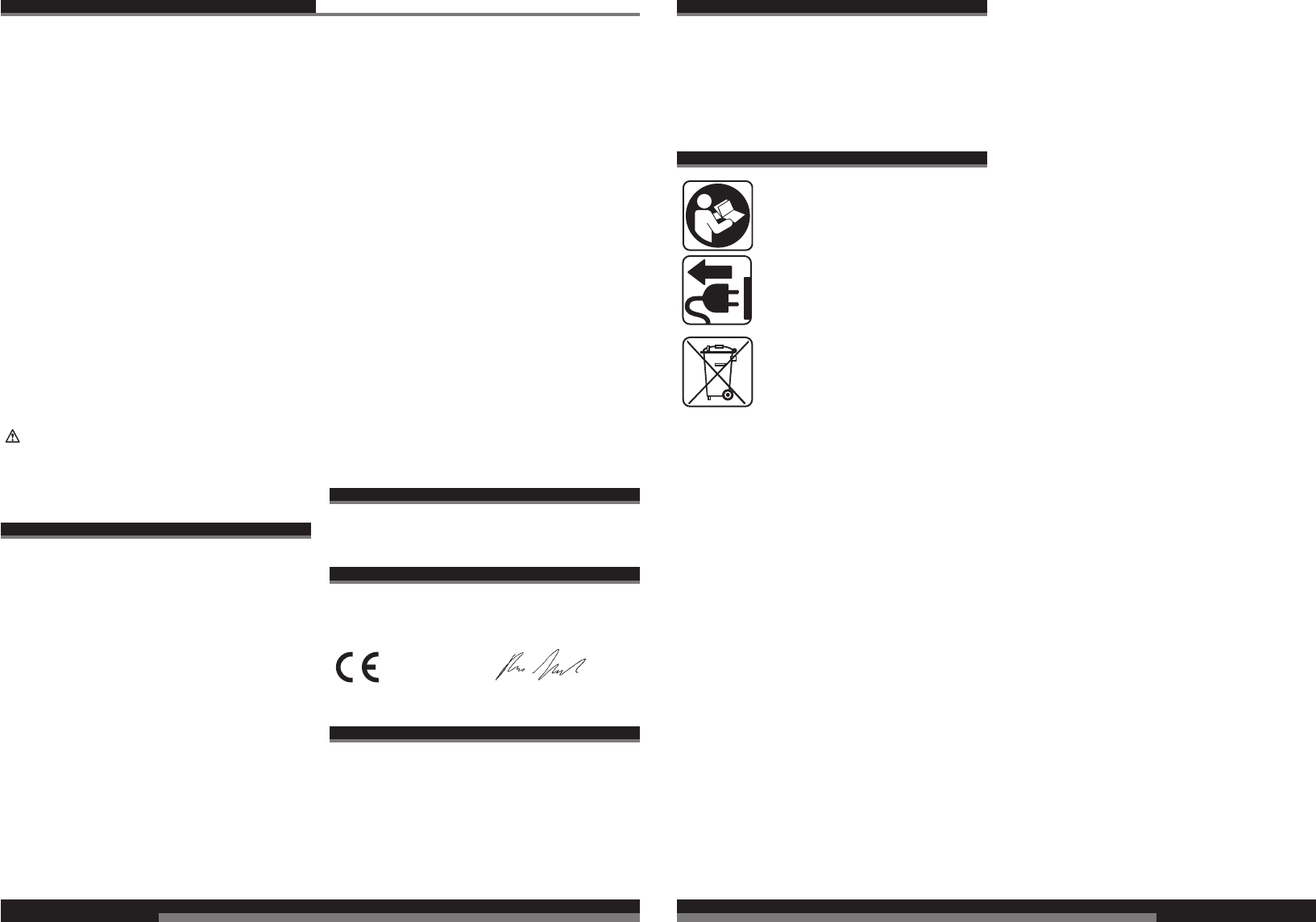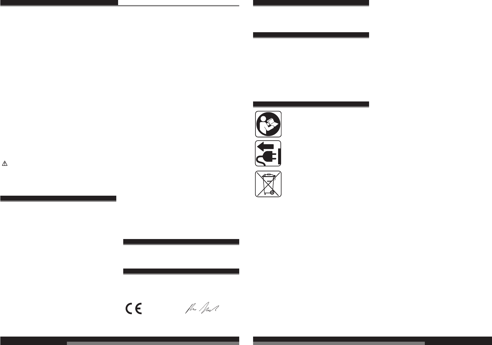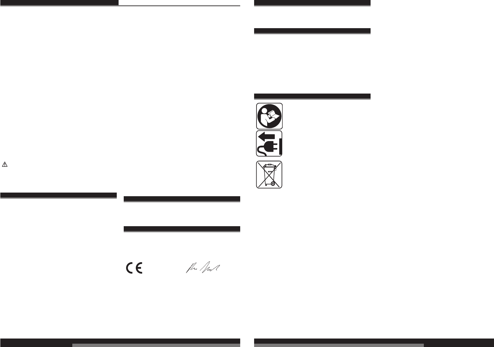 CE-Konformitetserklæring, Nettilslutning, Vedligeholdelse, Symboler Vær venlig at læse og