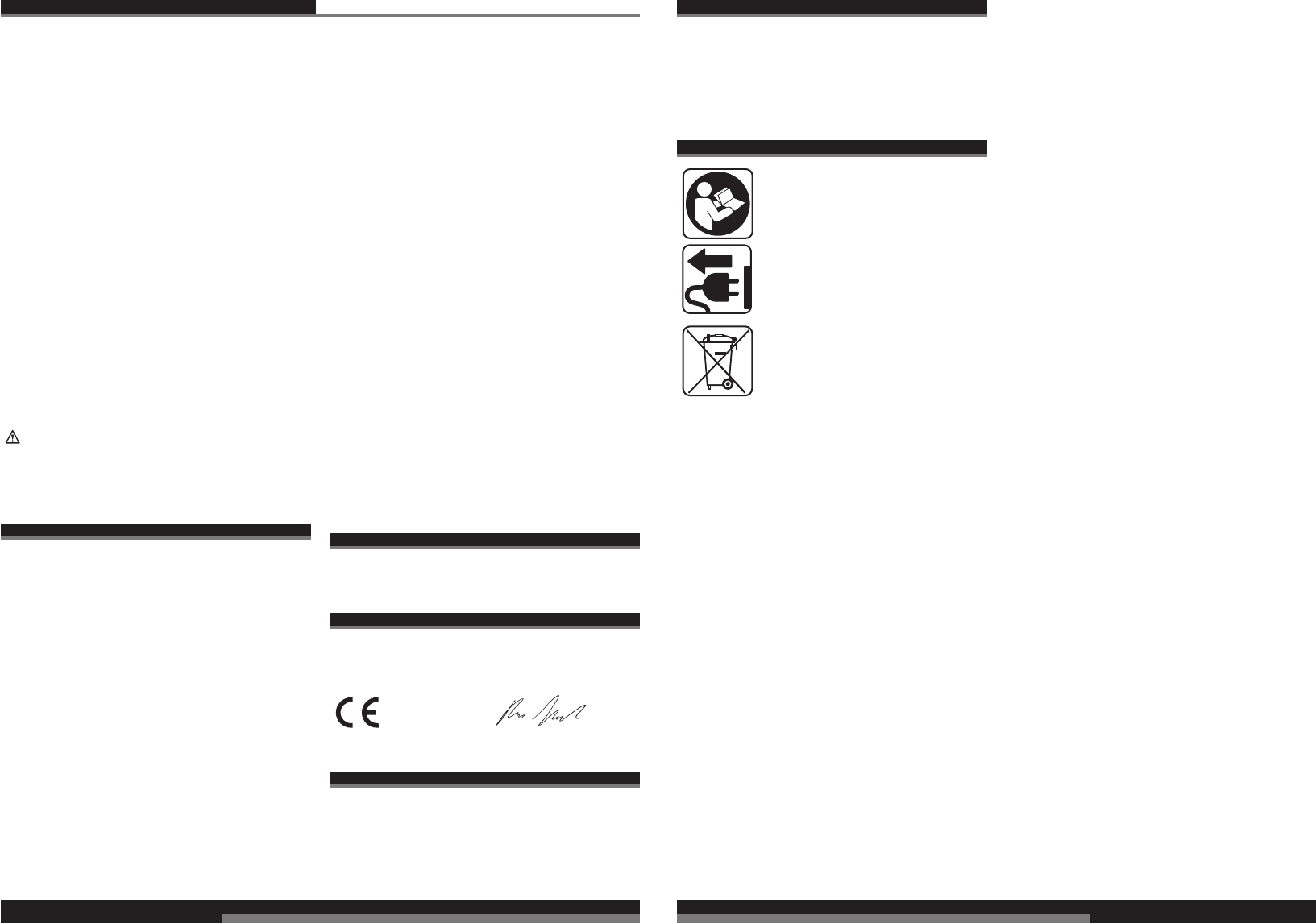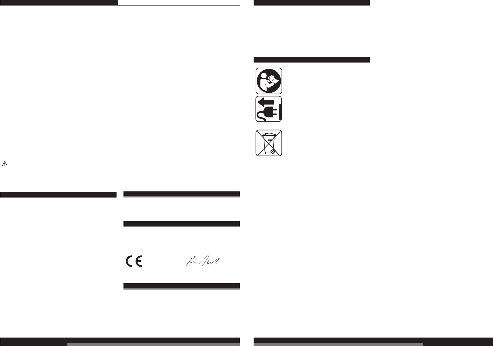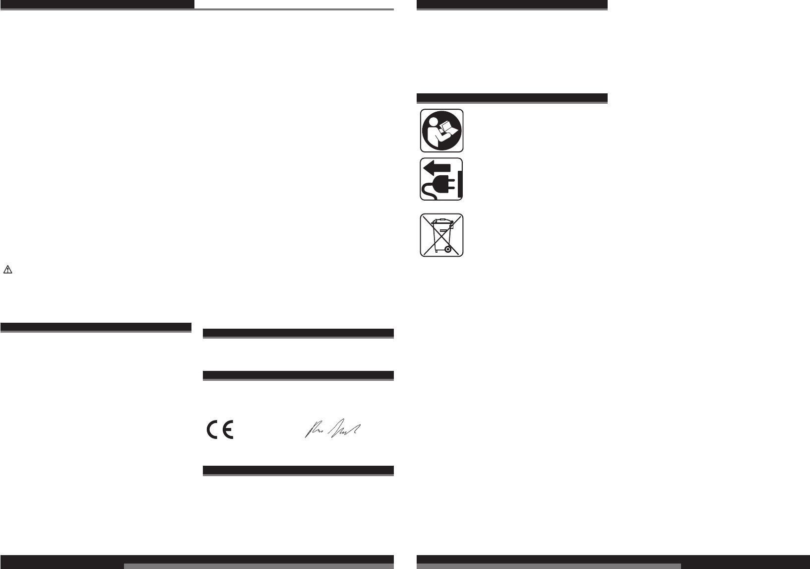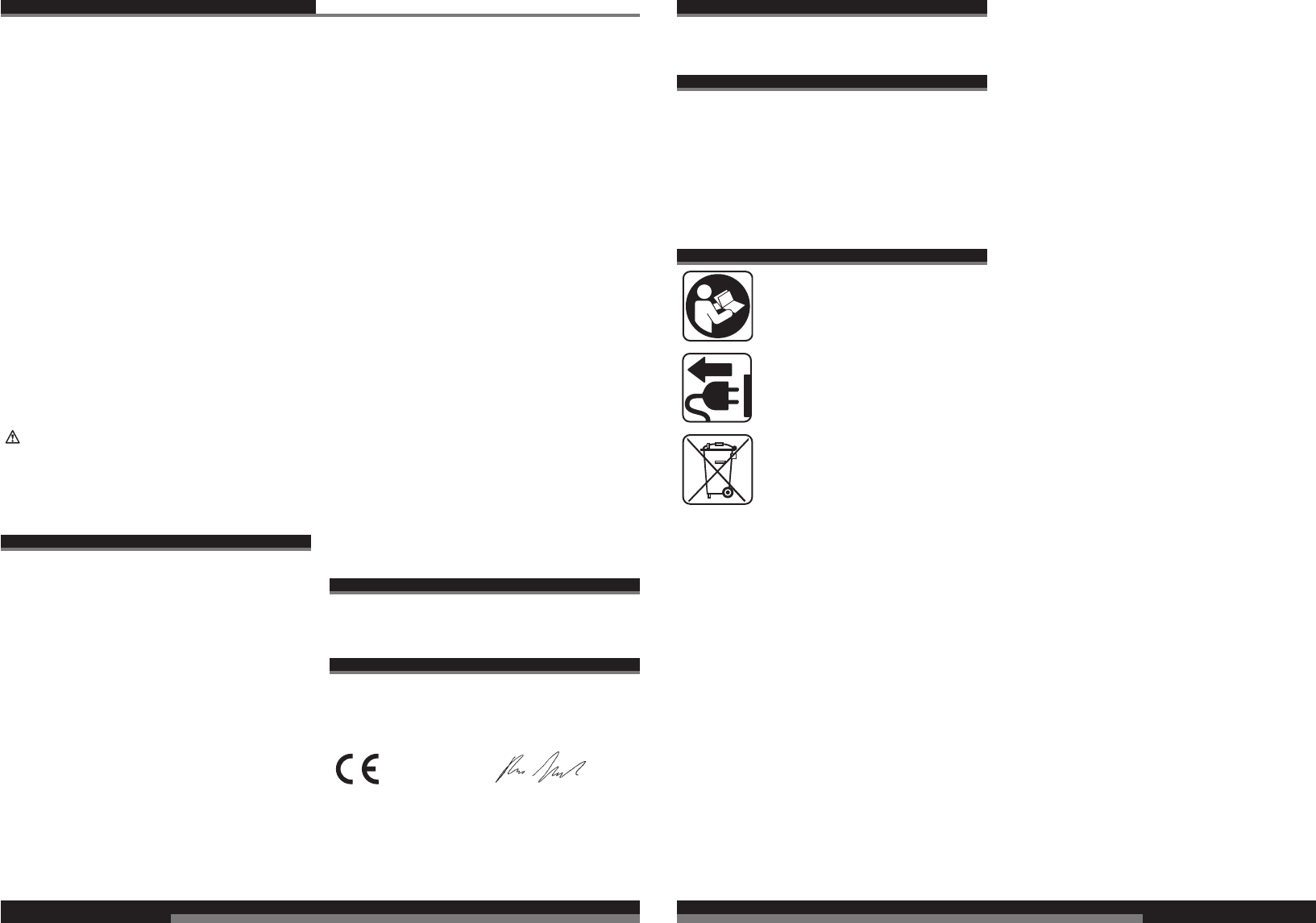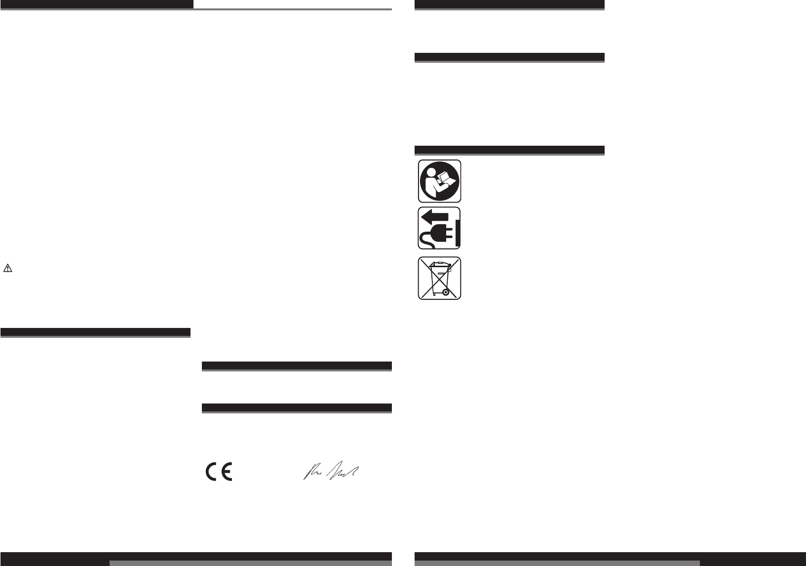 CE-Konformitetserklæring, Nettilslutning, Vedligeholdelse, Symboler Vær venlig at læse og
