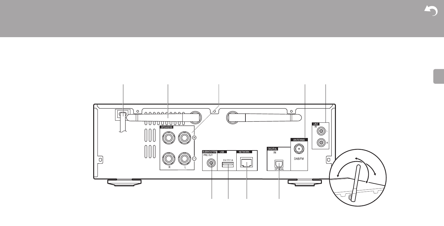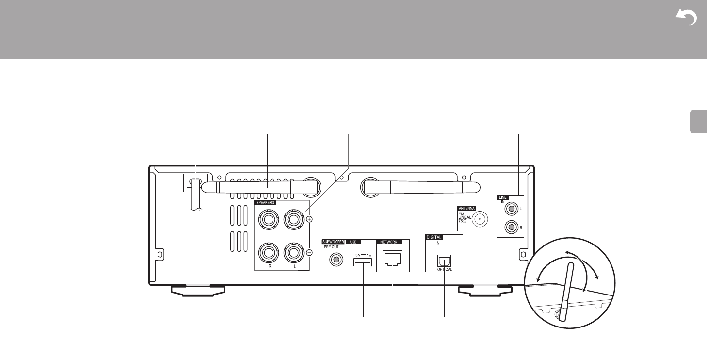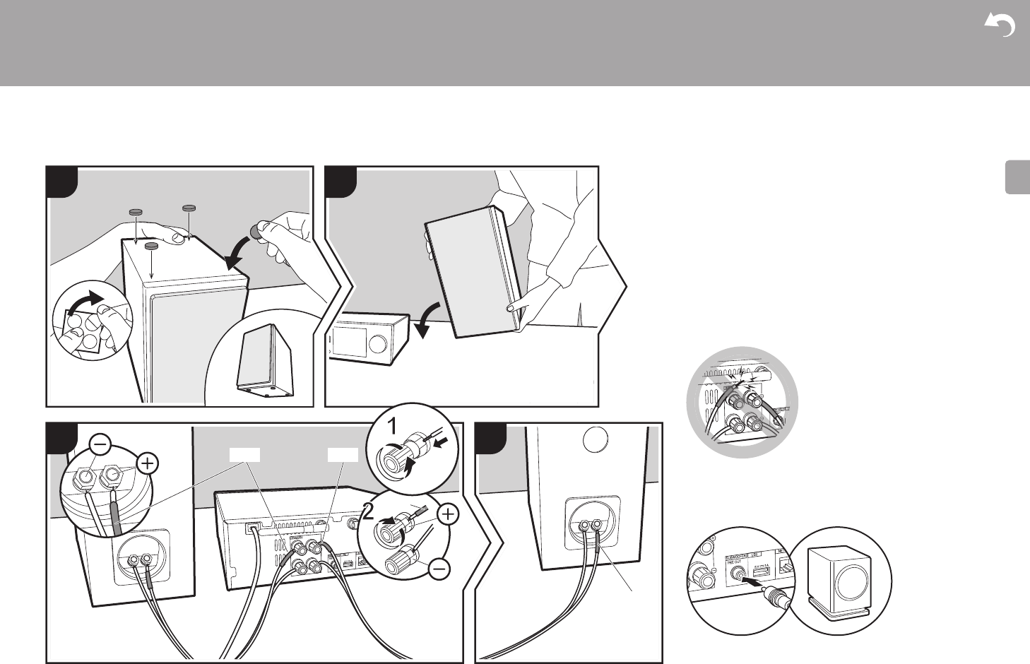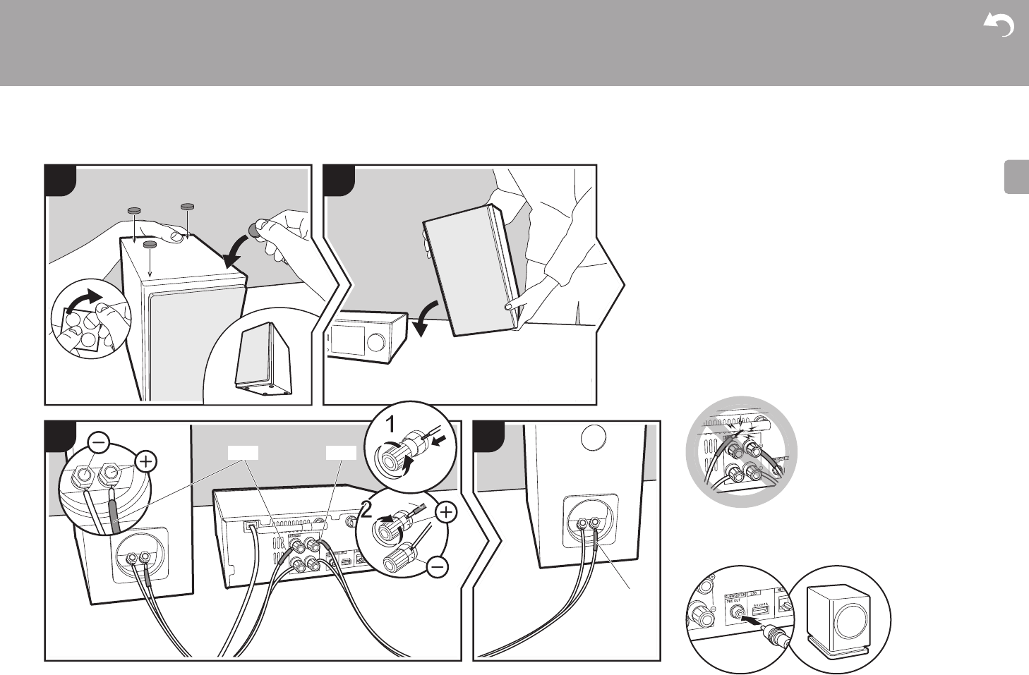0Connect speakers with 4 Ω to 16 Ω impedance.