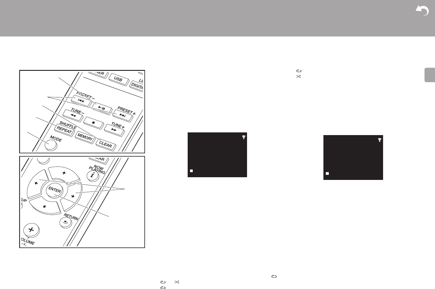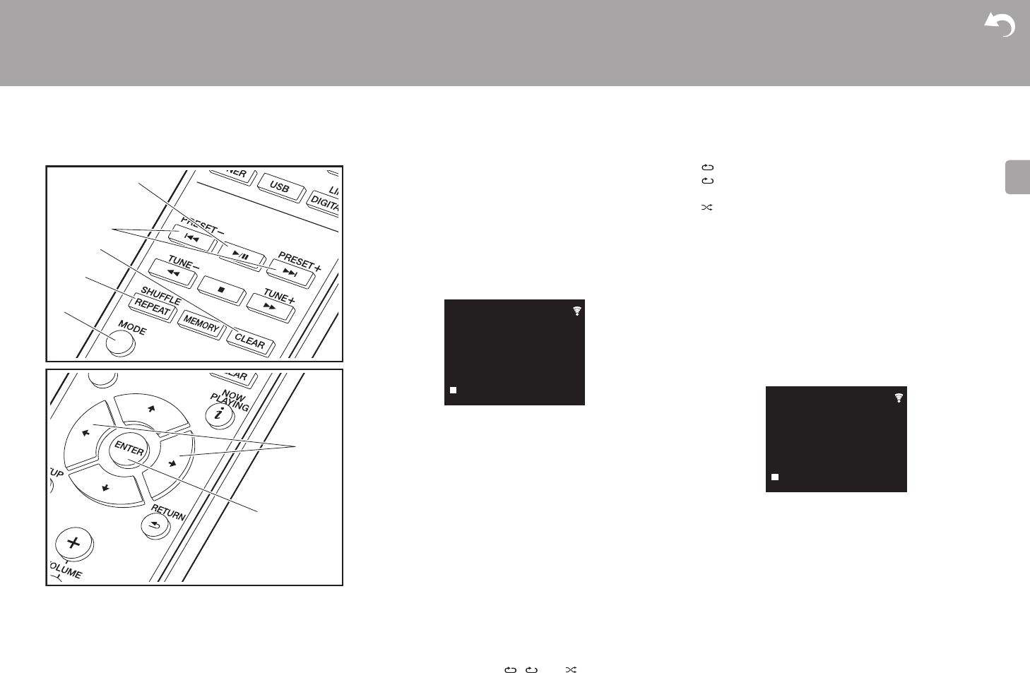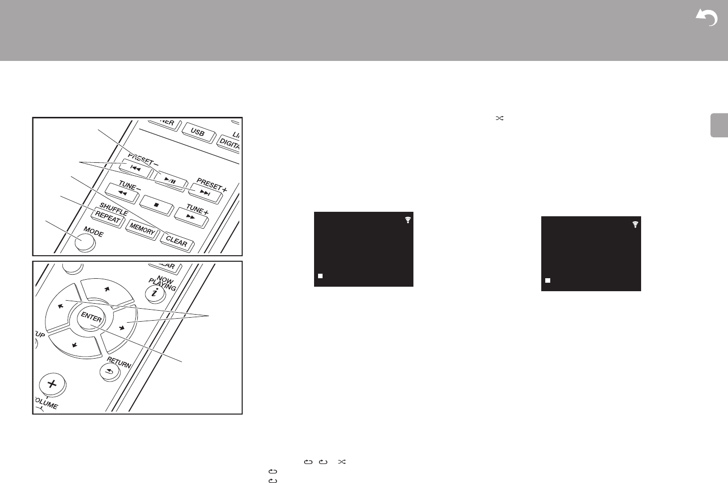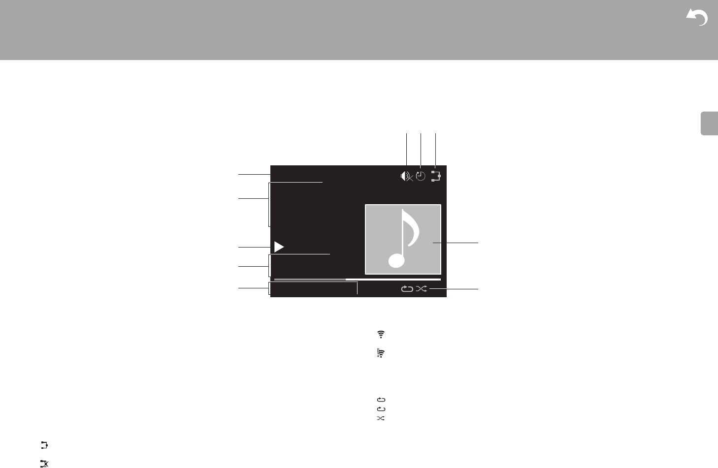 : Return to the beginning of the track being played. Press and hold to rewind the