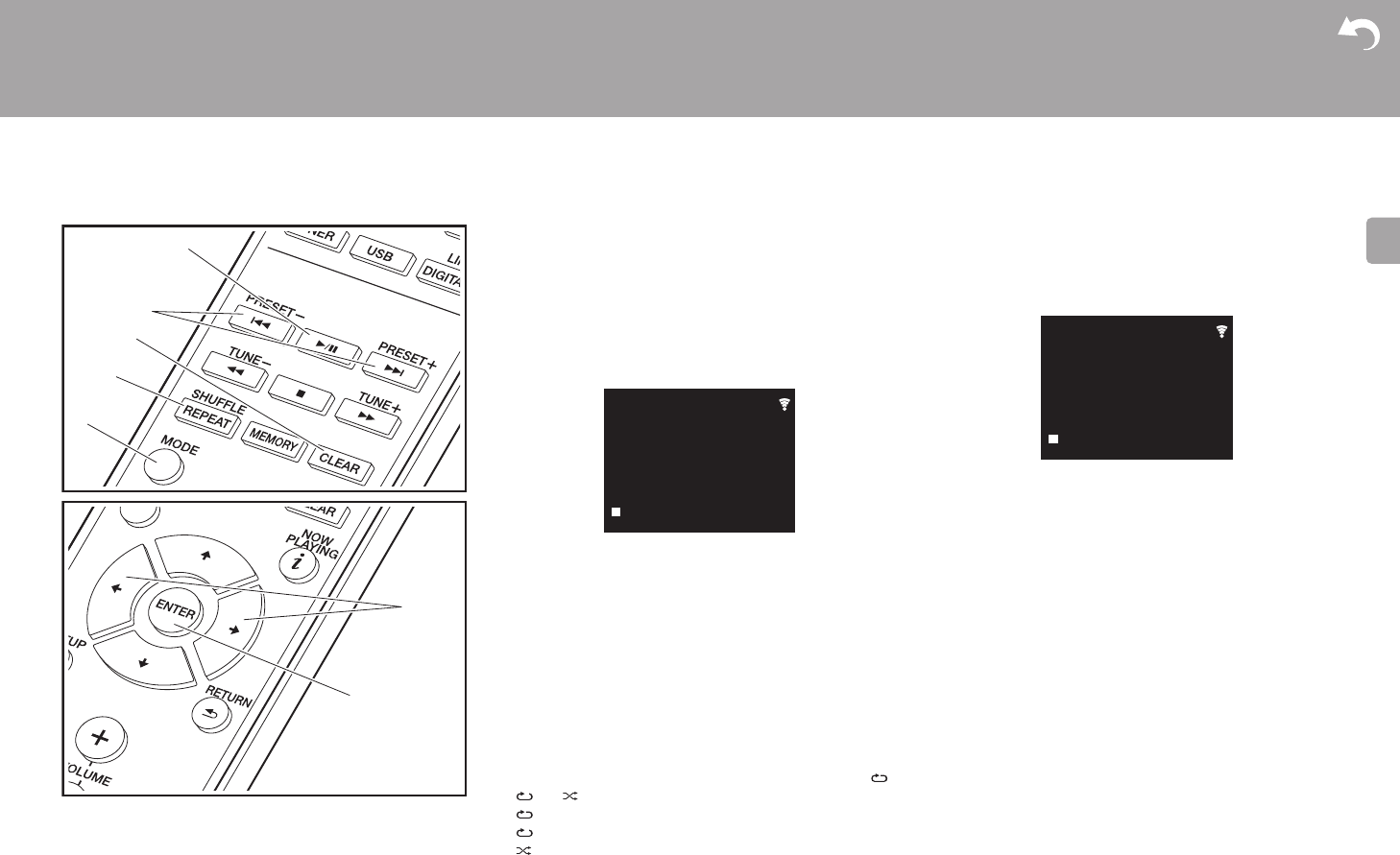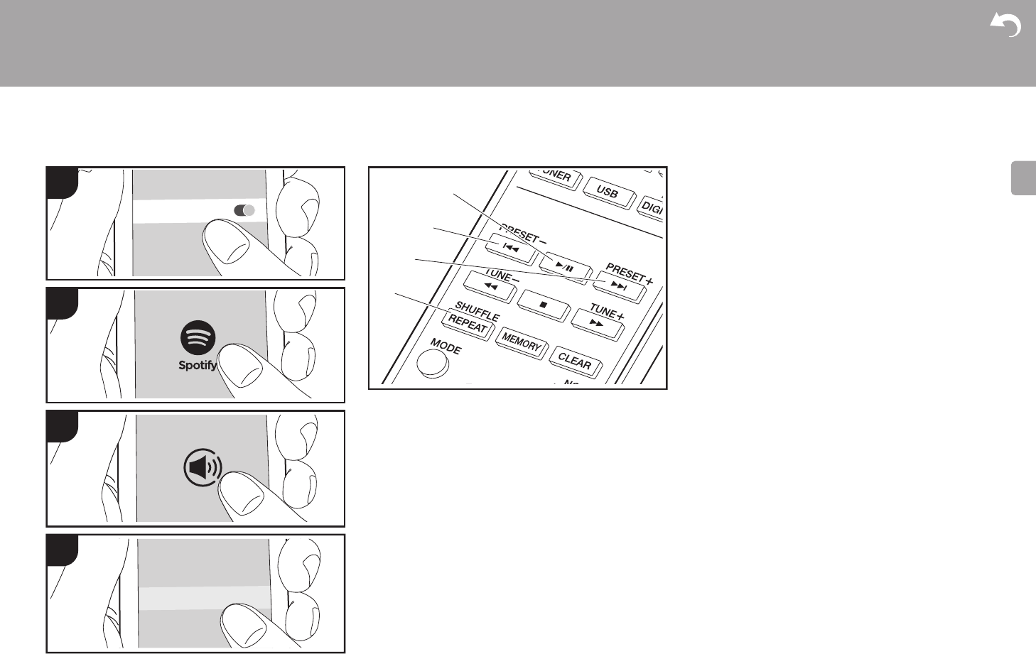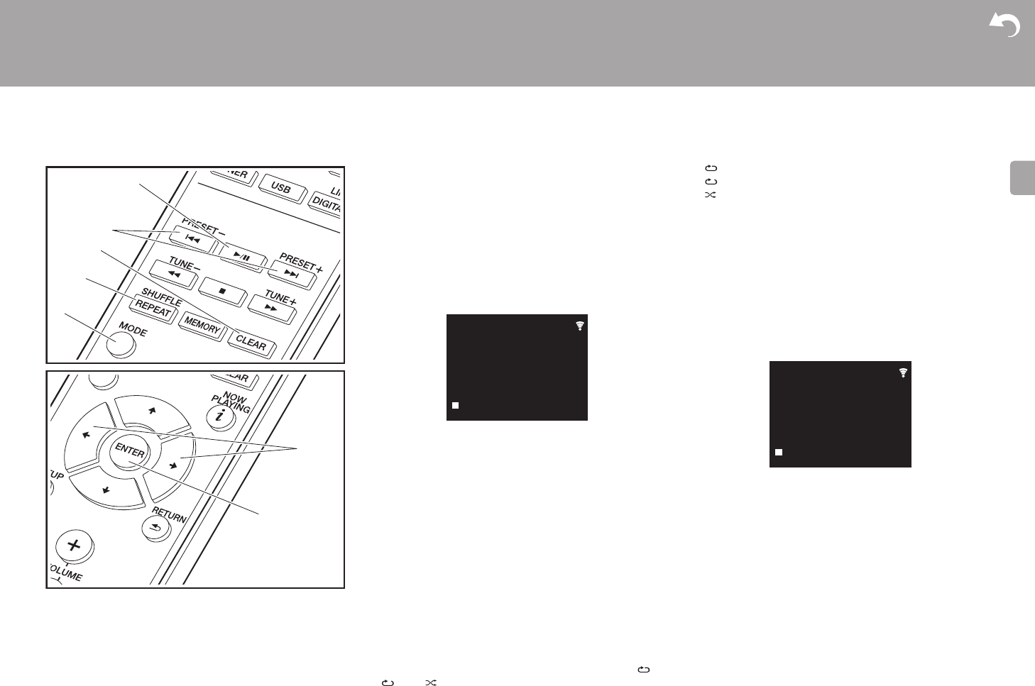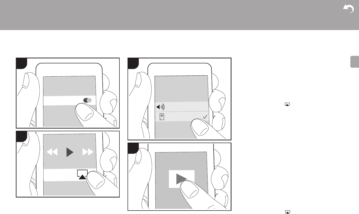 : Return to the beginning of the track being played. Press and hold to rewind the