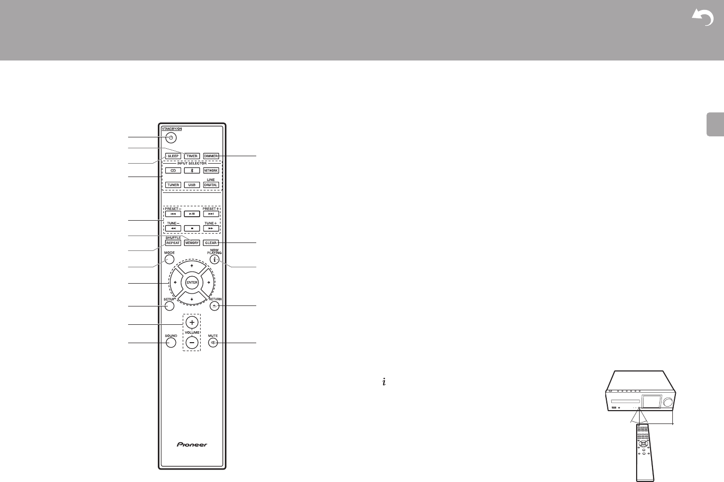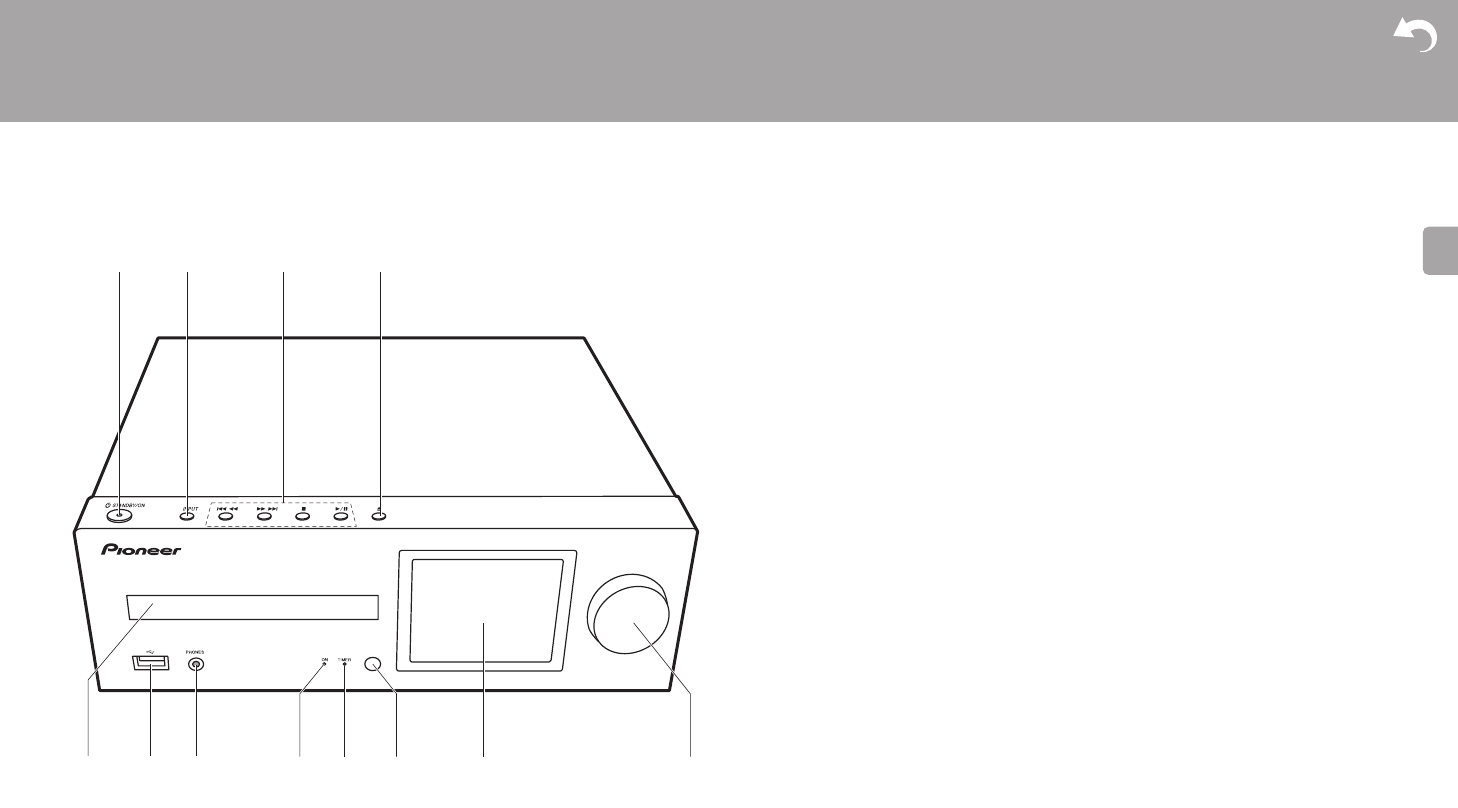 1. ÍSTANDBY/ON button: Turns the unit on or to standby mode.