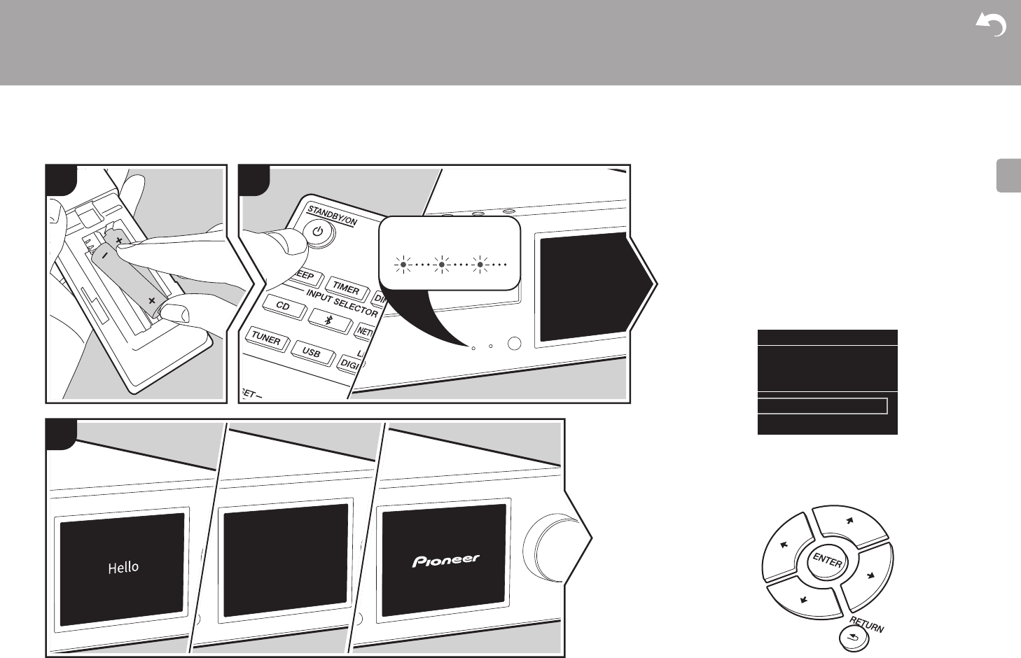 > Before Start > Part Names > Install > Initial Setup > Playback