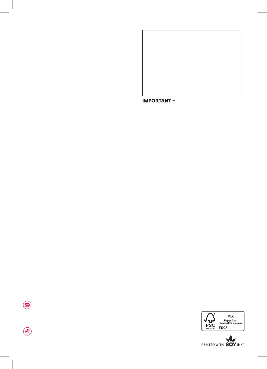 1. Contacting Mac Customer Services listed on the back of this booklet;