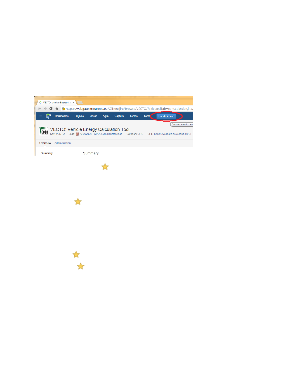 • Issue-Id: Created after you save the issue, and it has the form "VECTO-13". It is appended at the