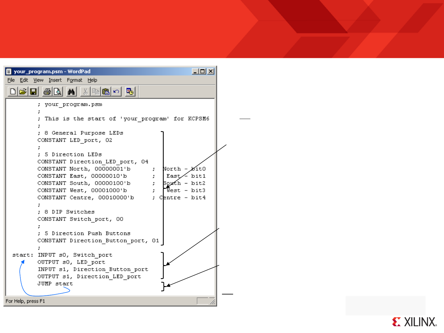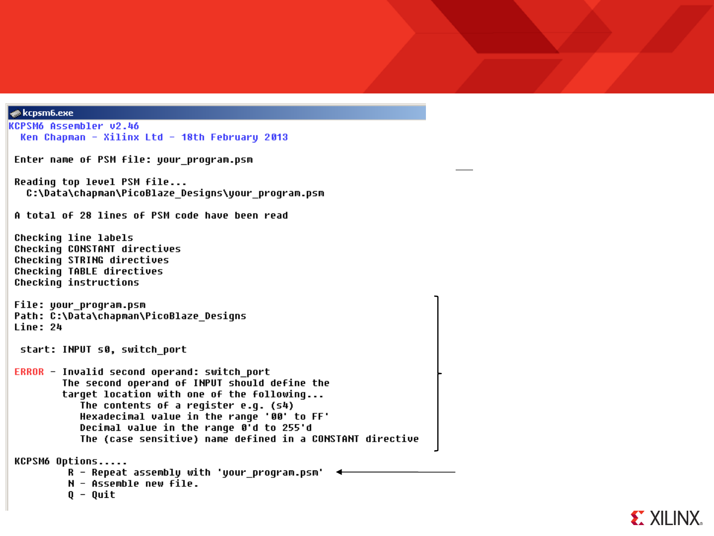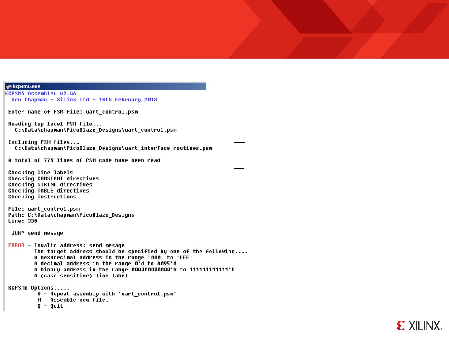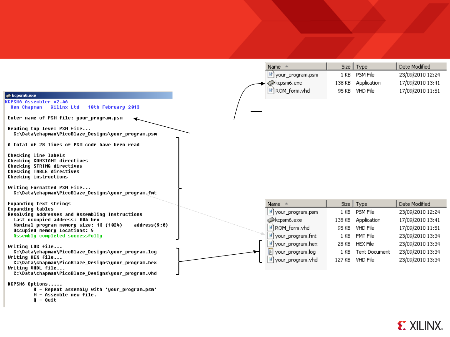 level PSM file. The KCPSM6 assembler will then automatically read the template that you have provided and generate a VHDL file defining the memory type