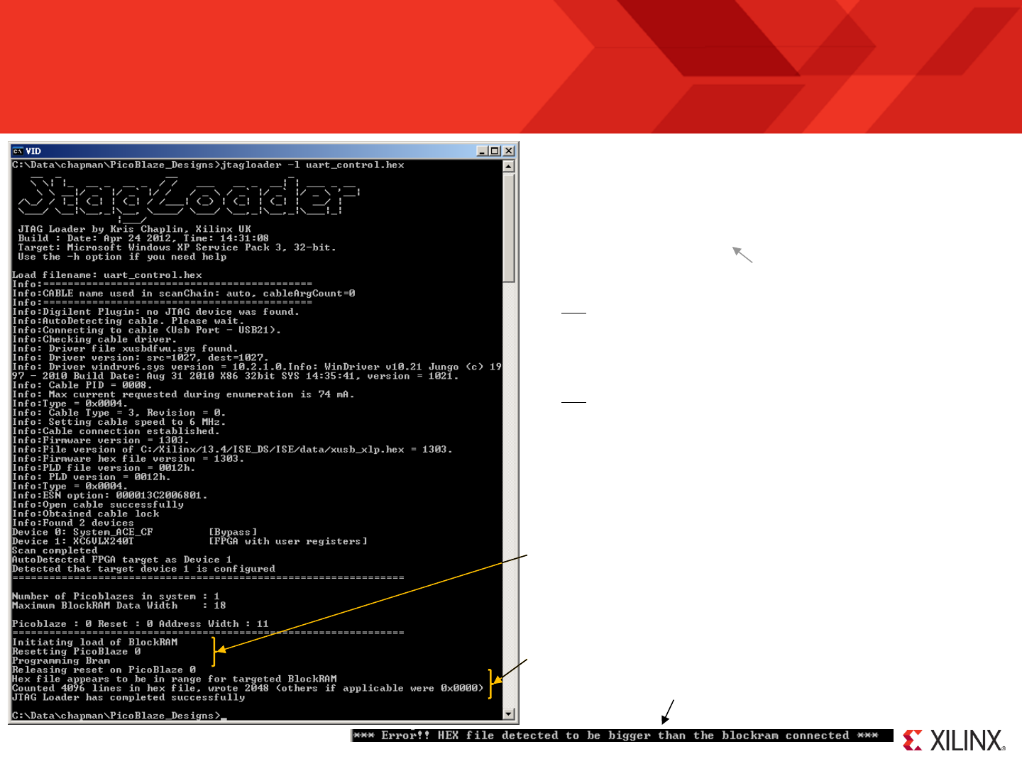 ‘DBITERR’ is used to interrupt KCPSM6 and force it to start executing code from the Slice-based ROM. Although an