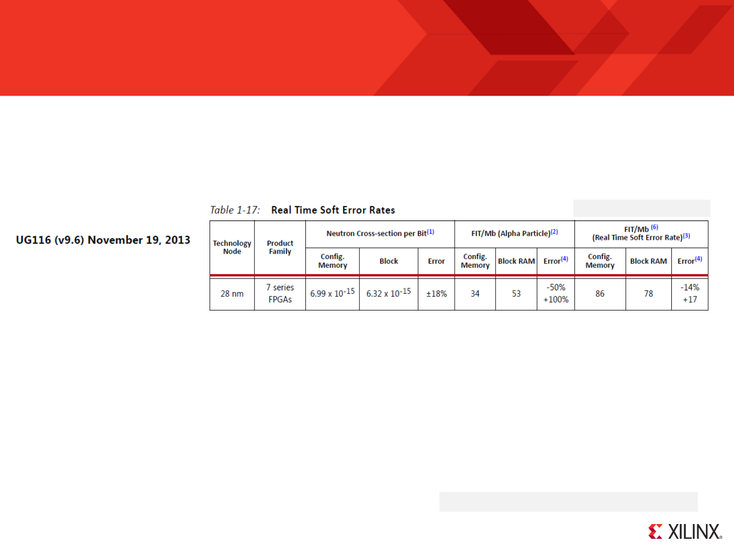 Slice-based ROM has a total nominal FIT rate of 1.80 (page 117) but this memory is always being kept clean by the
