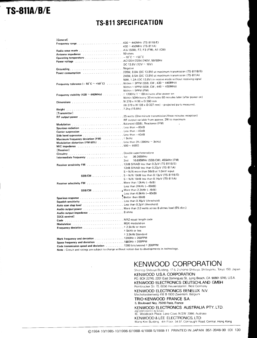 Kenwood TS 711/TS811 Service Manual 711 811 Serv