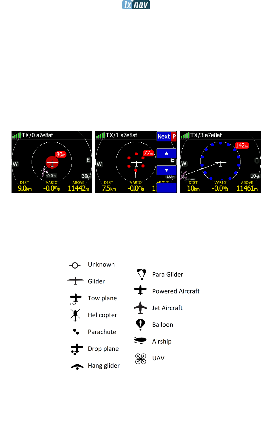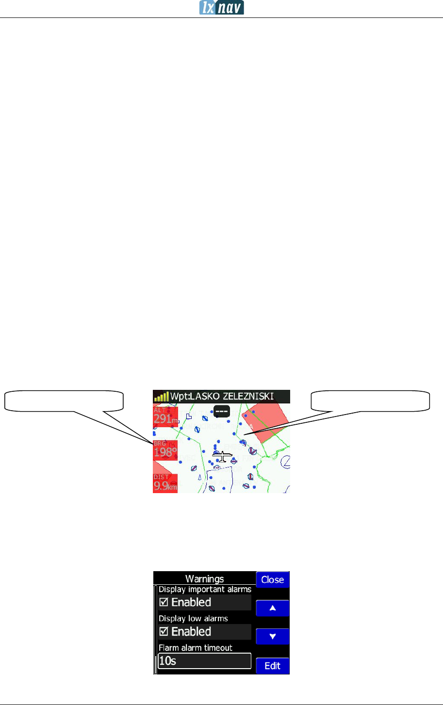 Below are warnings which will appear for Flarm, PCAS and Obstacle warnings.
