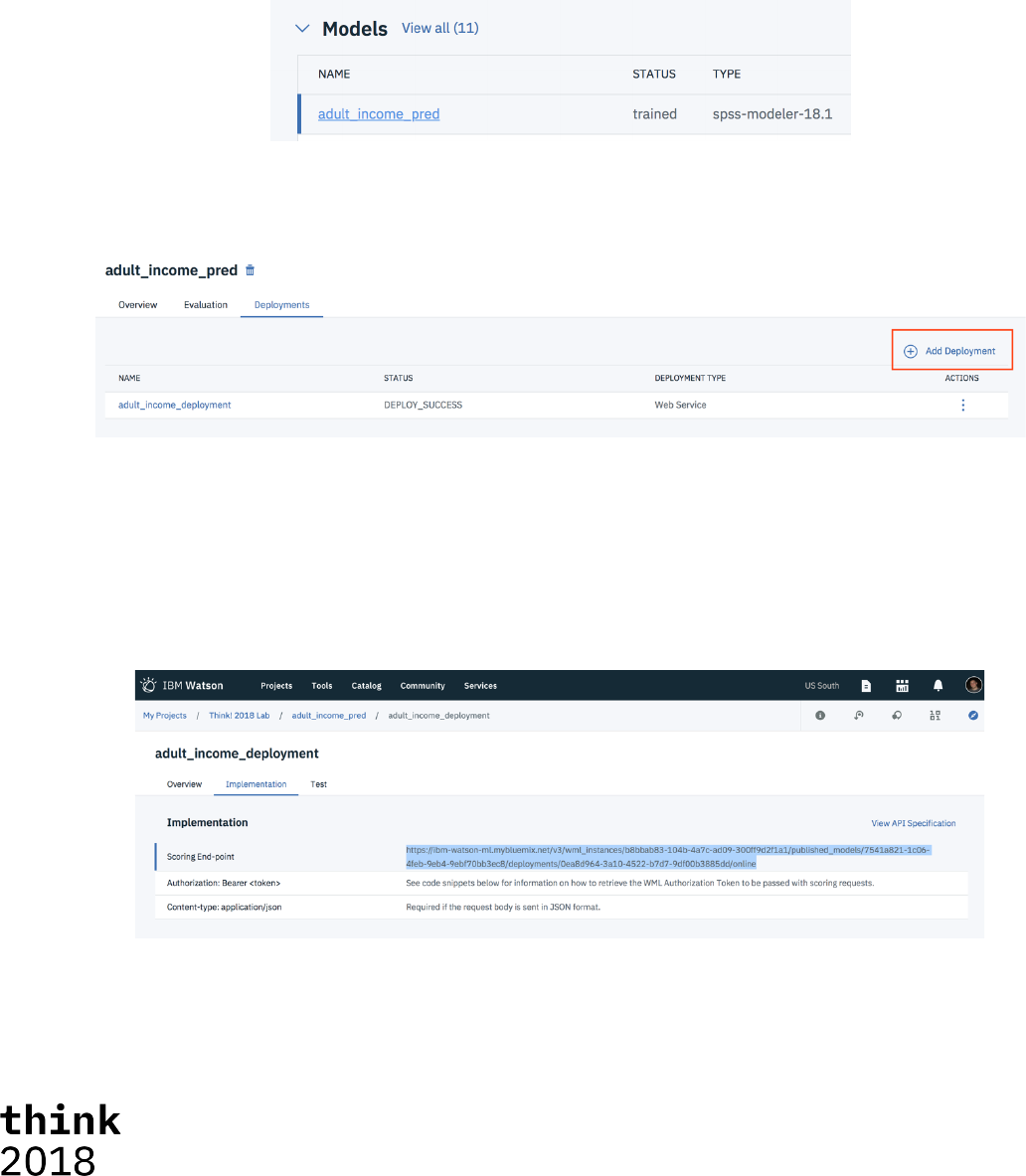 To use the model for scoring we need to deploy it in the Watson Studio project. The first step in