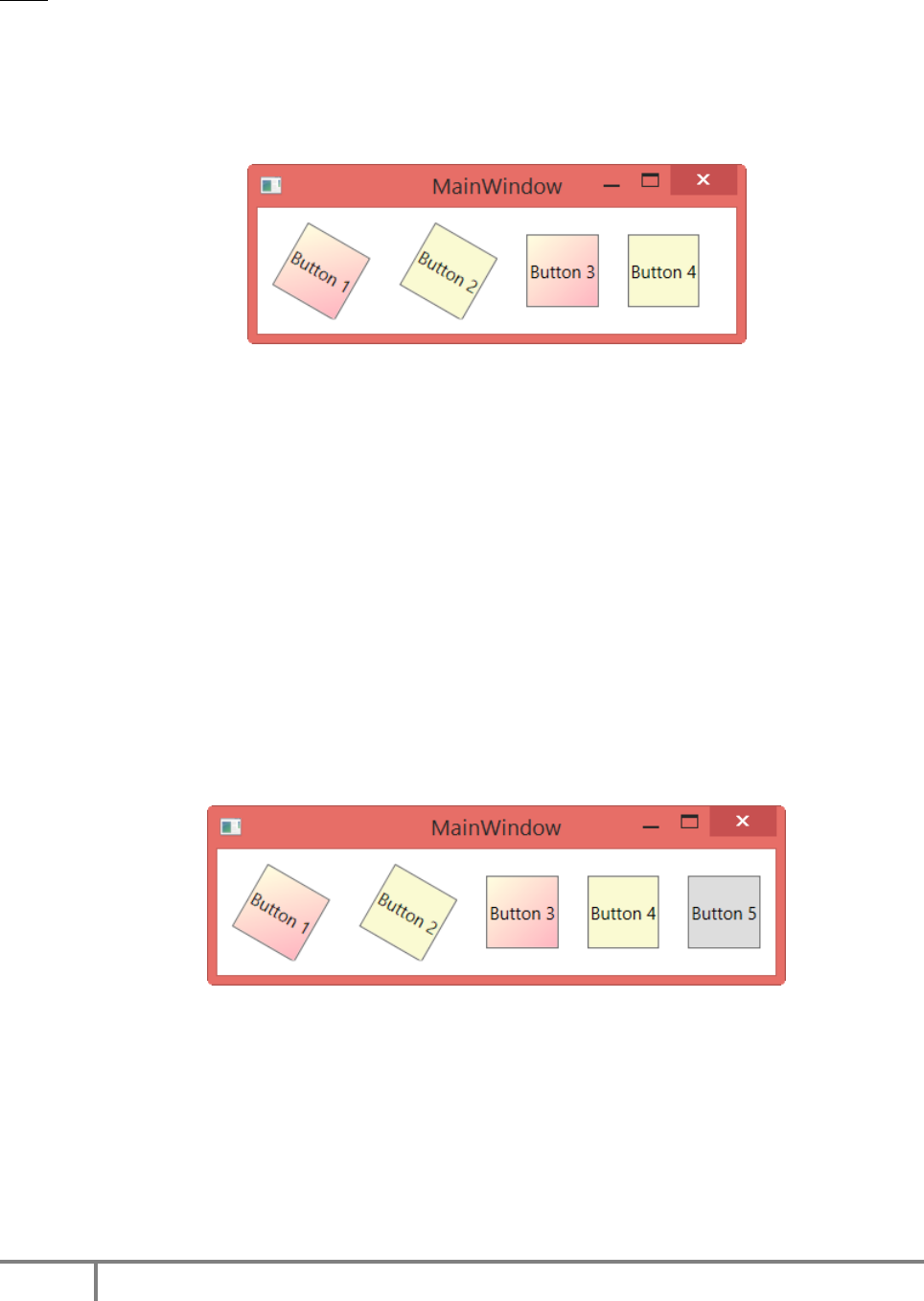 • Create a static resource of type RotateTransform and apply it to Buttons 1 and 2.