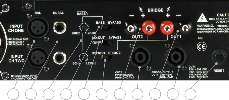 The input sensitivity of all power amplifiers is 0 dBV or 1 V respectively. Maximum output level is attained