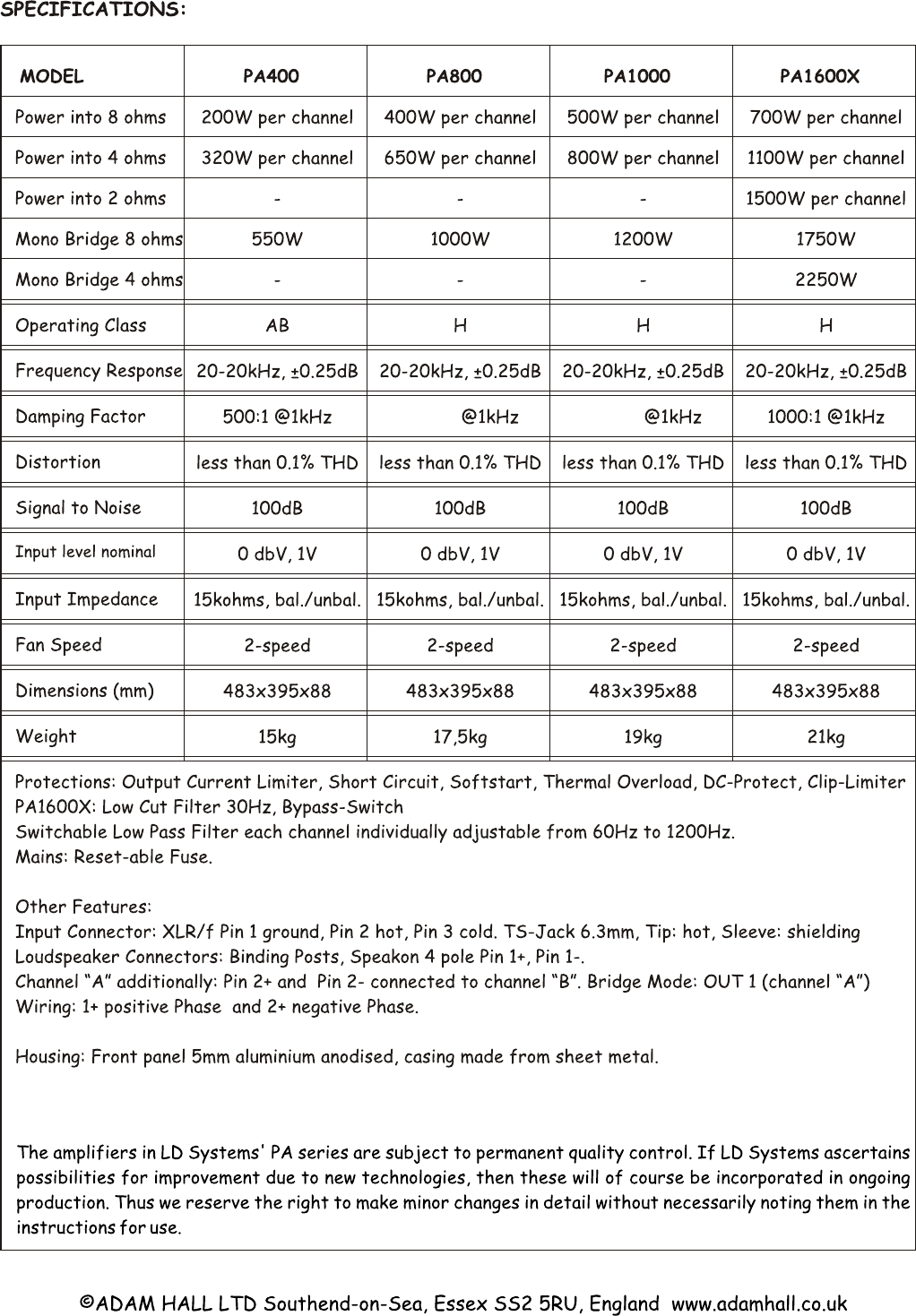 ©ADAM HALL LTD Southend-on-Sea, Essex SS2 5RU, England www.adamhall.co.uk